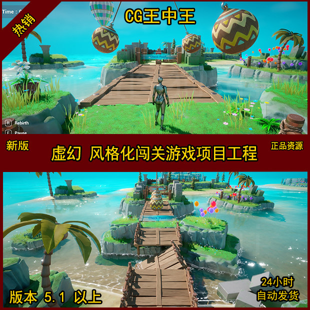 📚 虚幻5卡通海岛风格化勇士大闯关游戏项目工程UE5大摆锤热气球海水