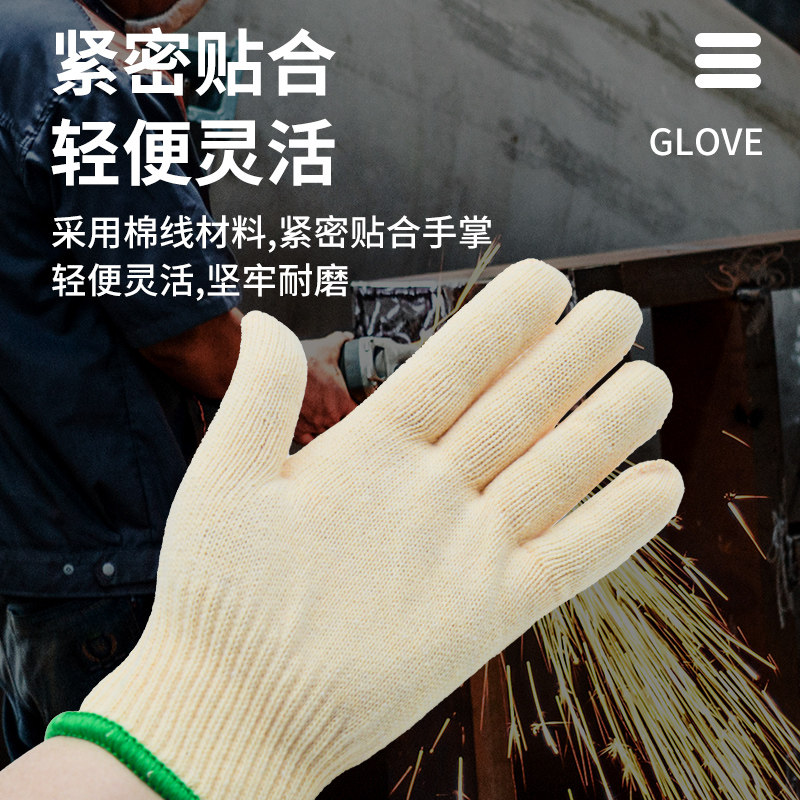 📚 棉手套劳保耐磨工作棉线黄棉工地干活劳动防护白加厚透气吸汗男女