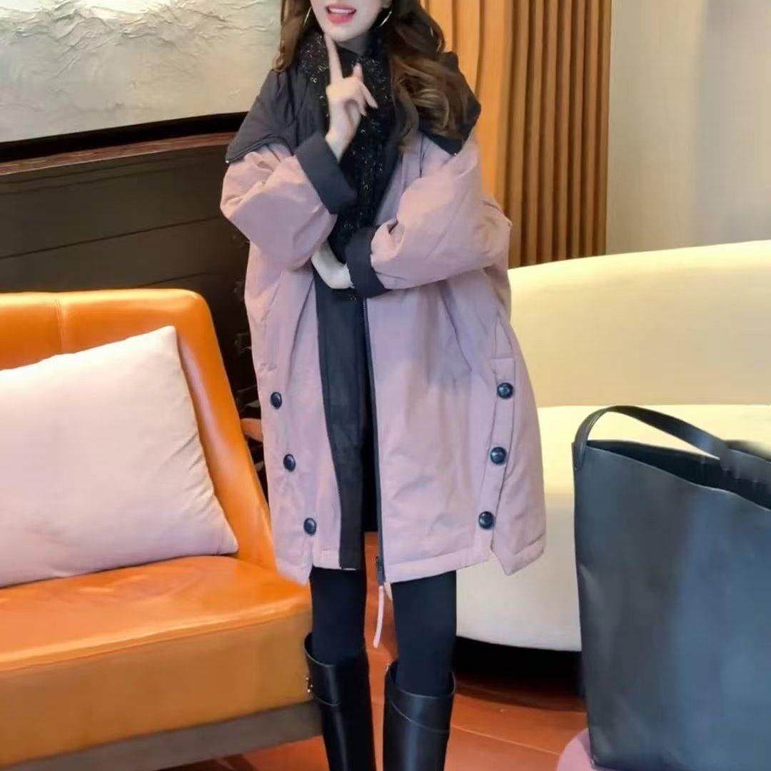 📚 2长02季5年冬加厚保暖棉衣夹棉外套尚时休闲宽松中款连帽棉服女款
