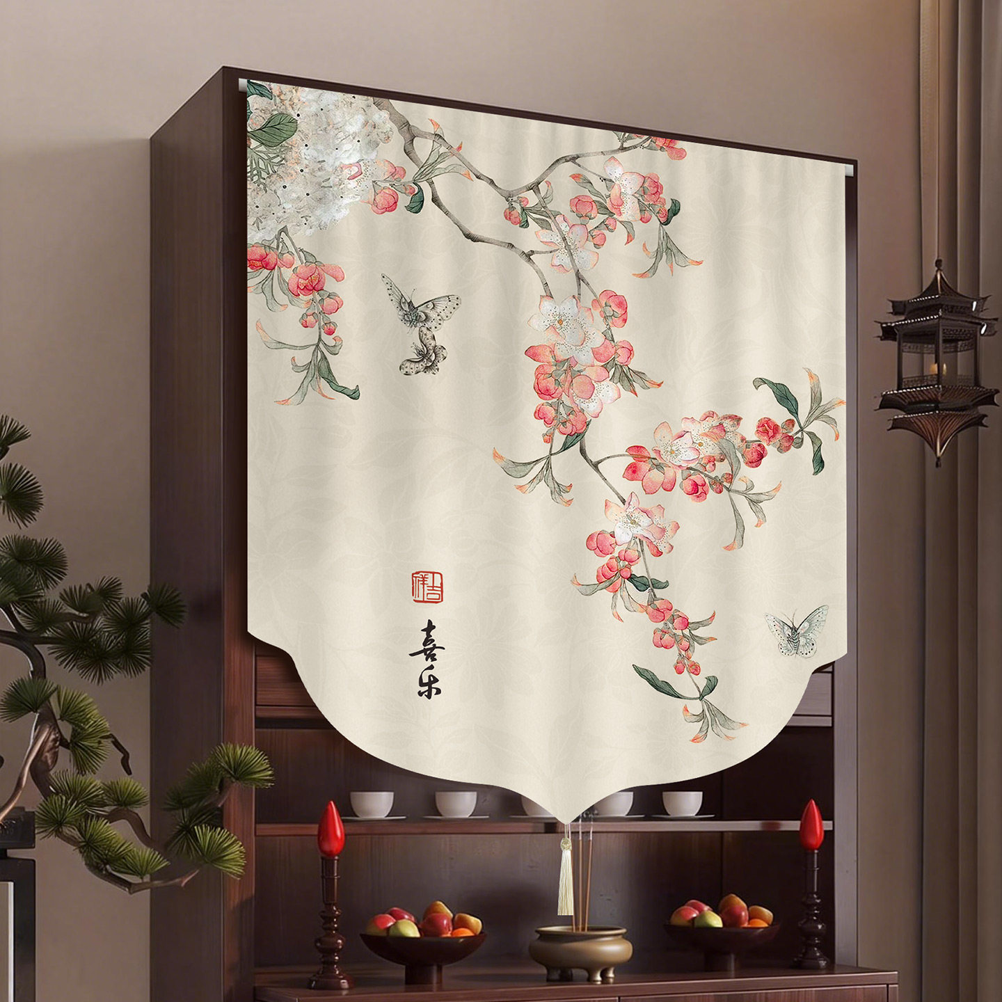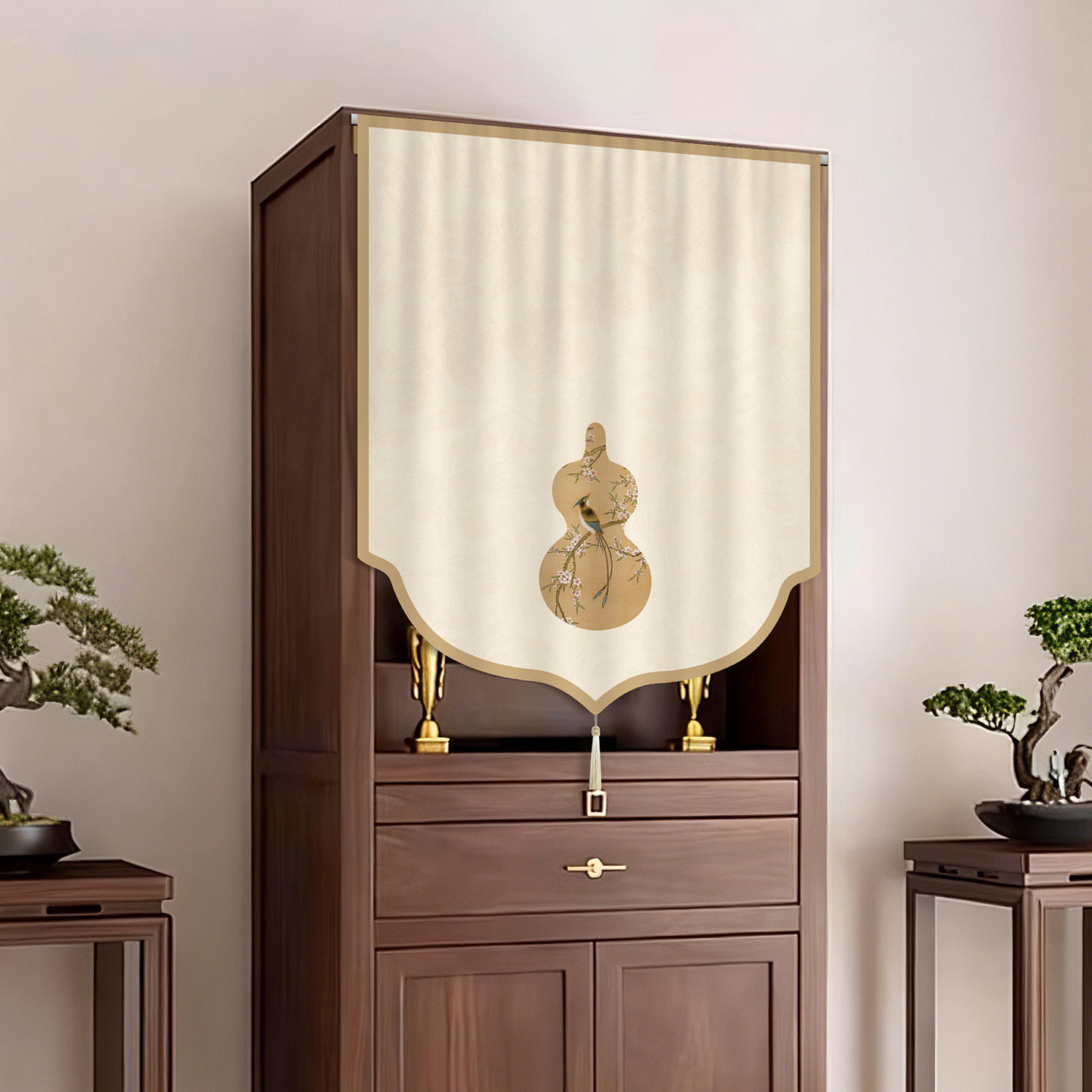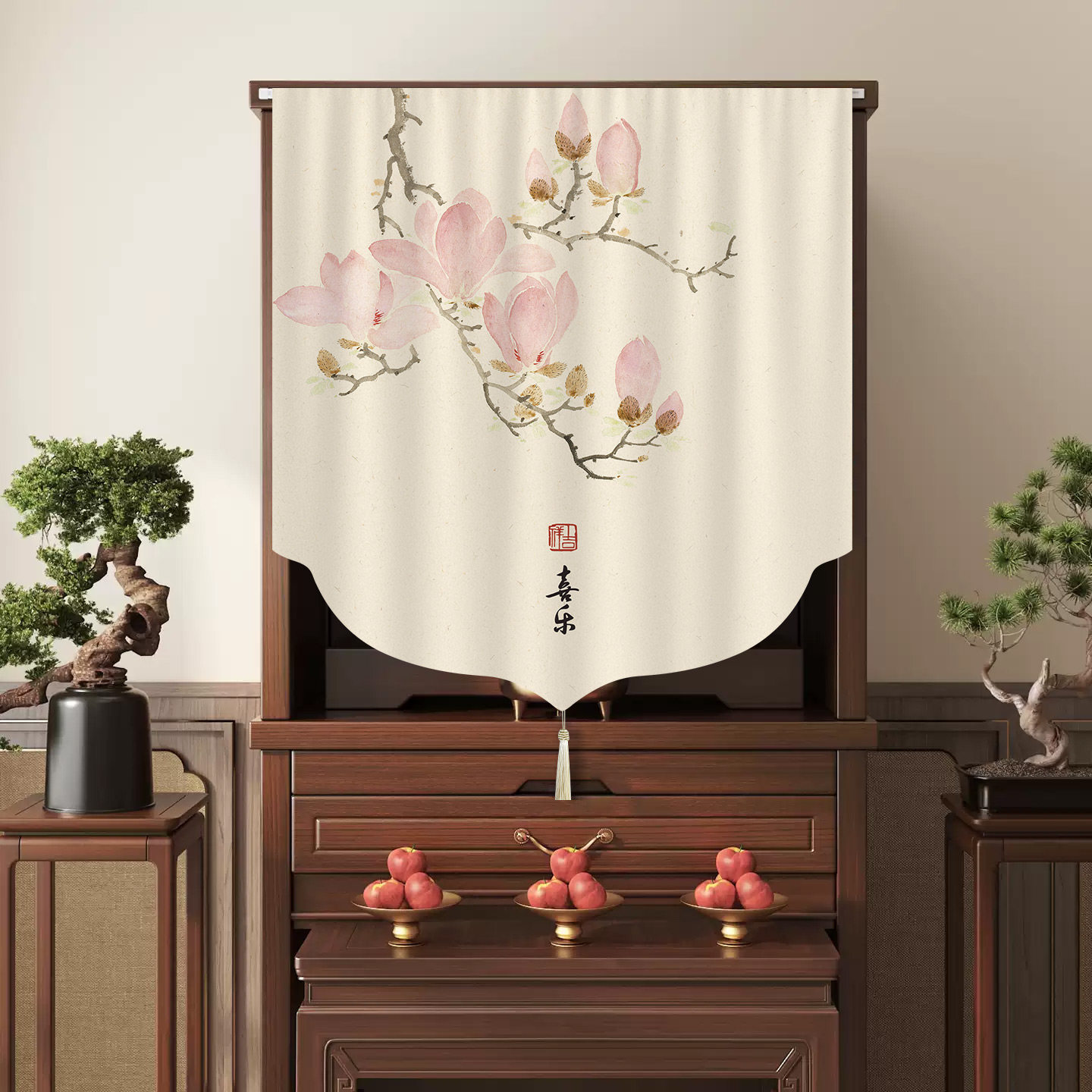 📚 中式佛龛遮挡帘家用免打孔神像拉帘佛堂供桌防尘帘菩萨柜子挡灰帘