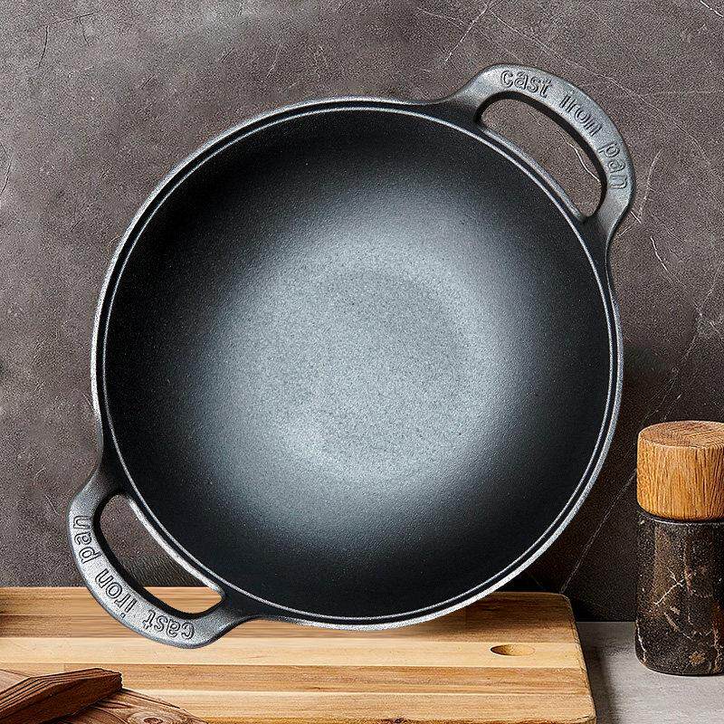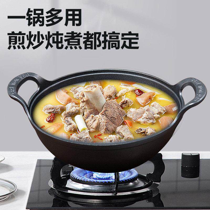 📚 九鼎铸匠铸铁元宝锅双耳炖锅炒锅不易粘无涂层燃气电磁炉通用铁锅