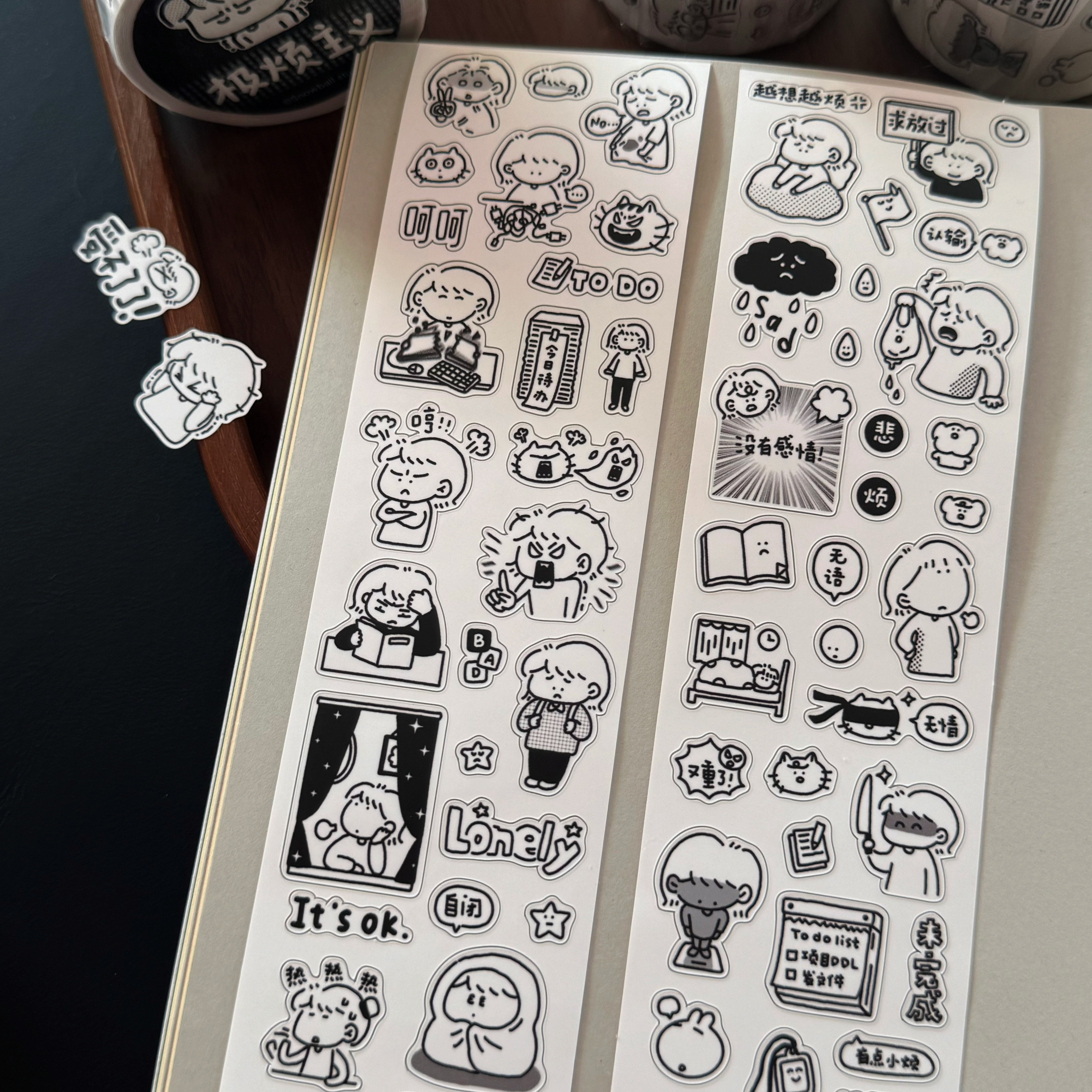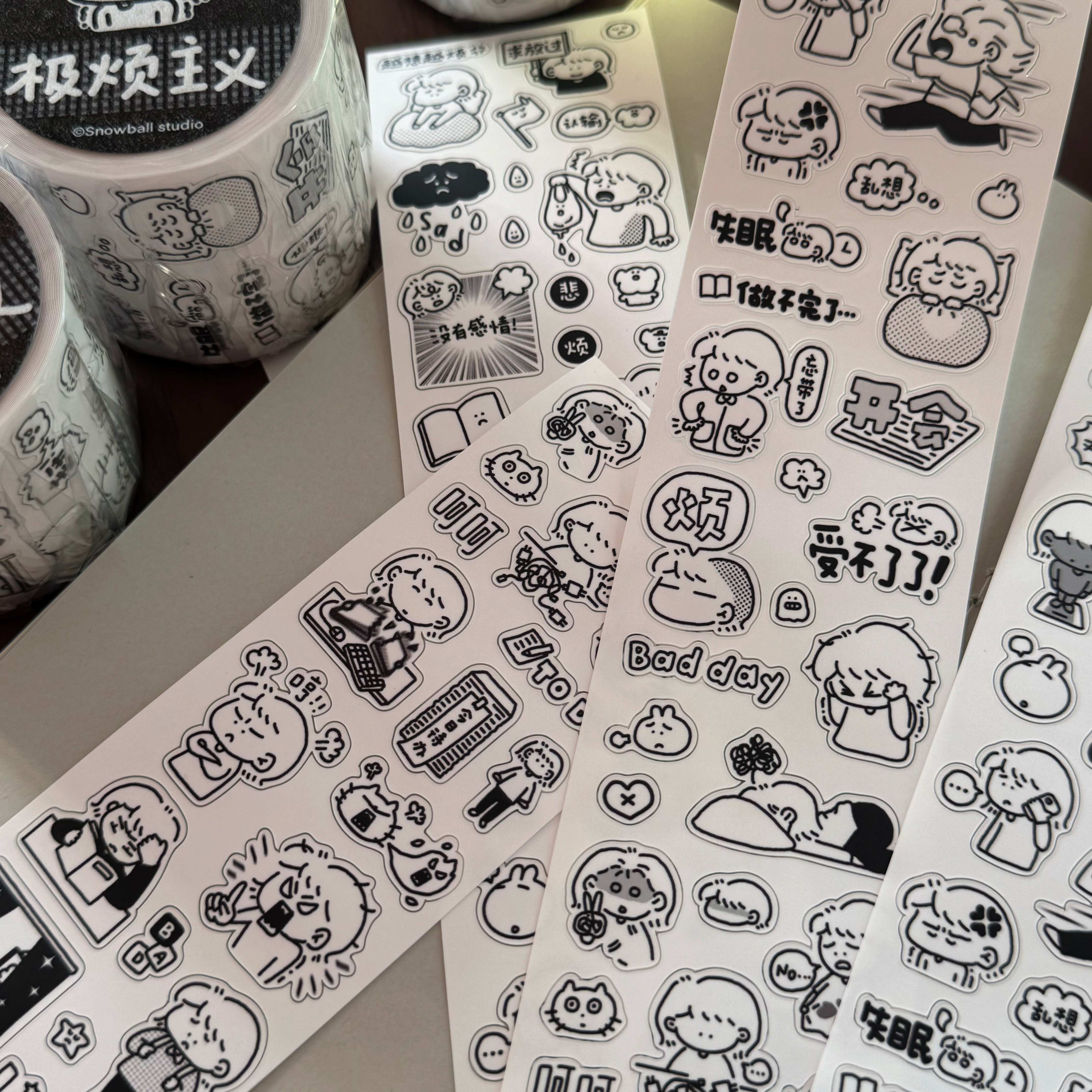 📚 极烦主义/雪球太太/原创贴纸卷分装记录烦恼胶带可爱创意手帐咕卡