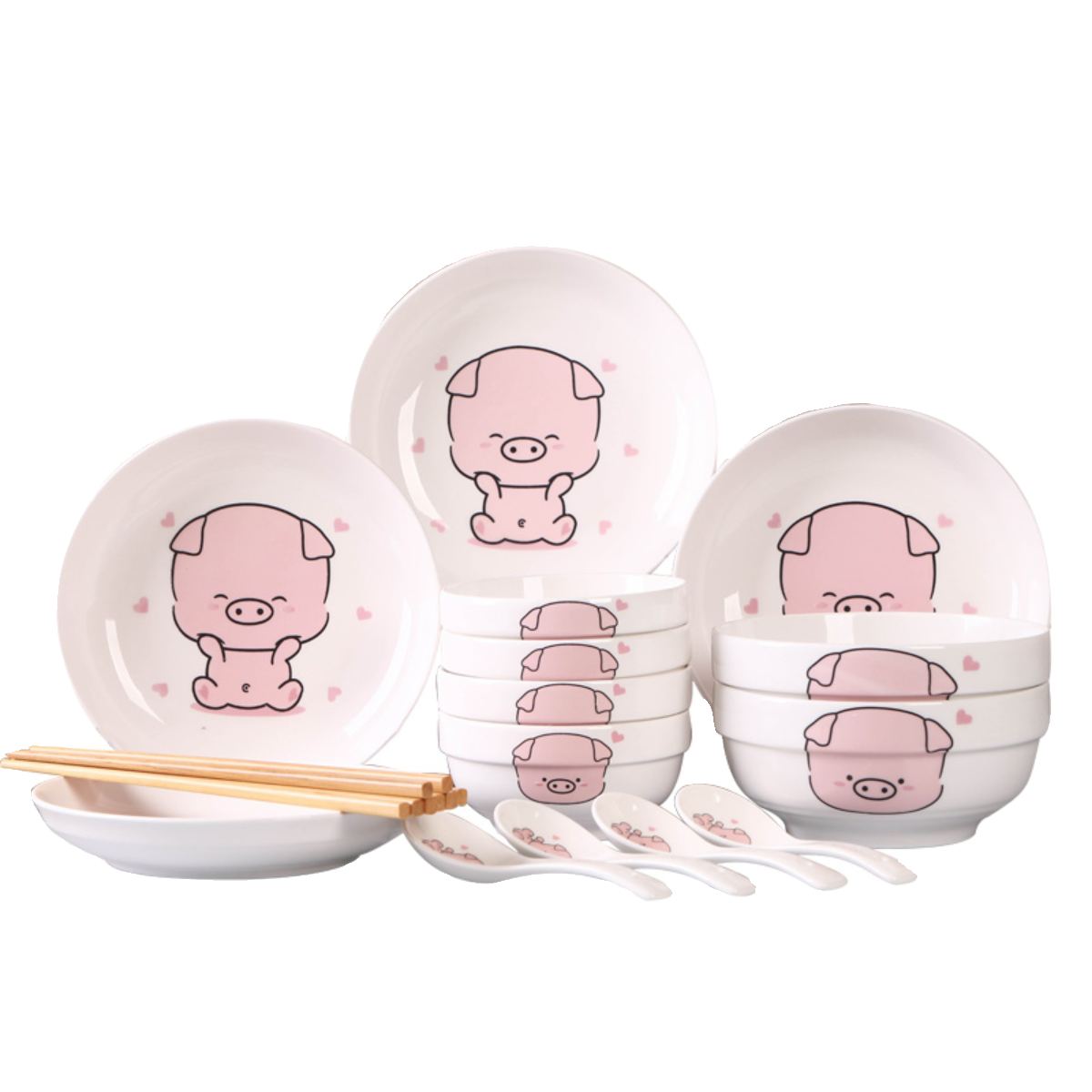 💓心动!中式可爱卡通陶瓷18件套,家用的高颜值餐具🍴