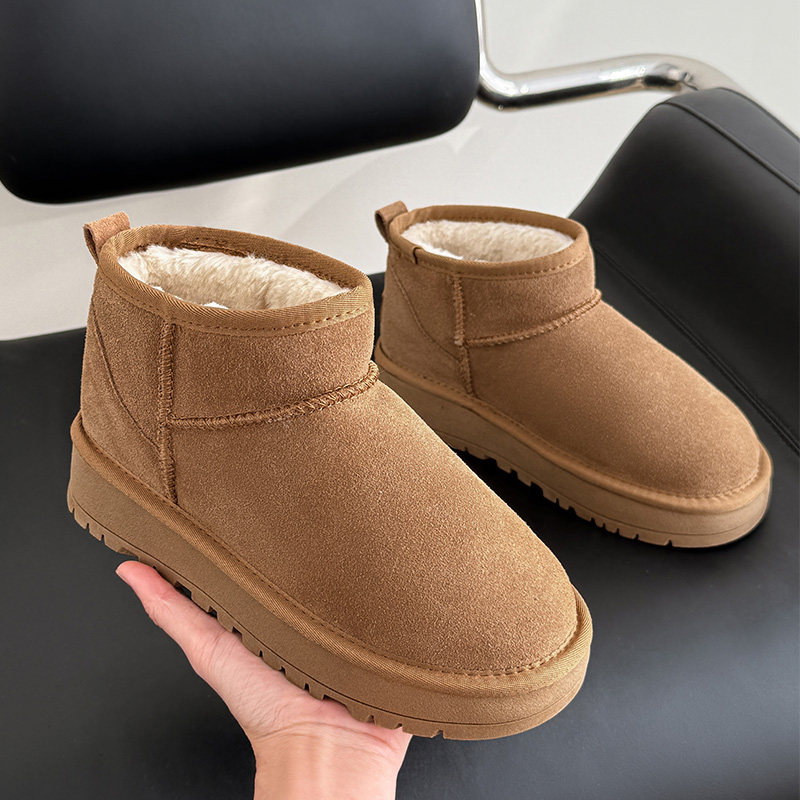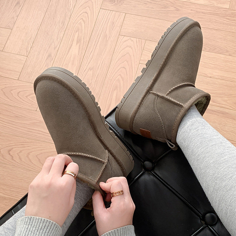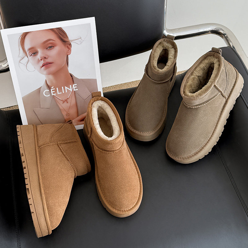 📚 冬季周冬雨同款mini雪地靴女厚底加绒加厚皮毛一体真牛皮防滑短靴