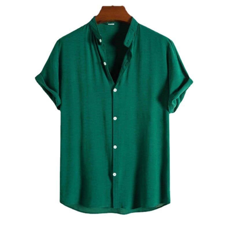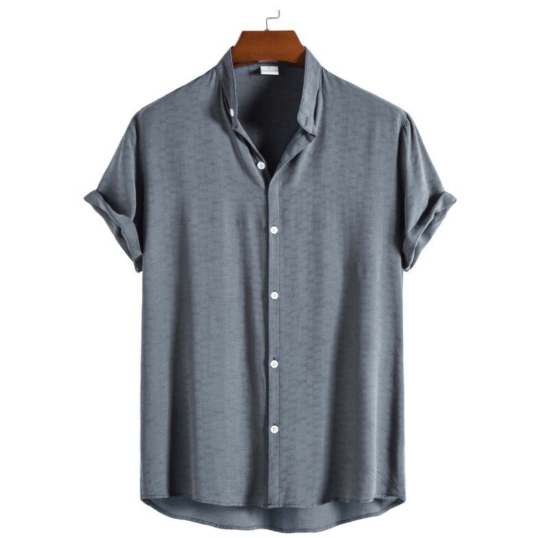 📚 Men Shirt Fashion Blouse新款男士时尚潮流纯色休闲短袖立领衬衫