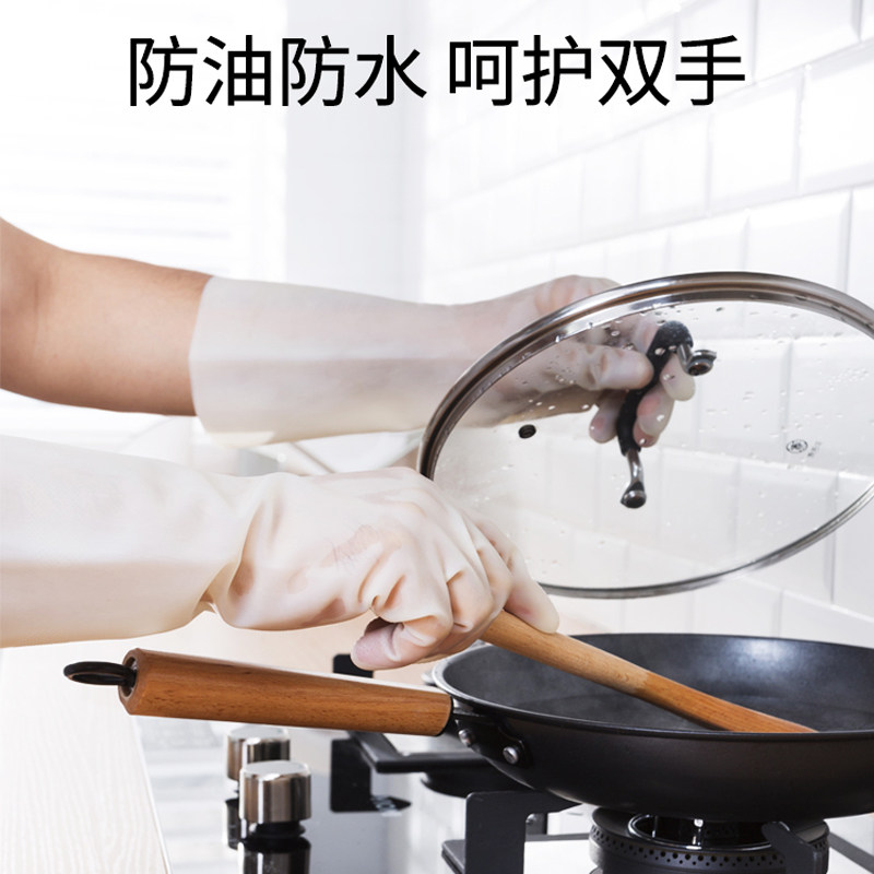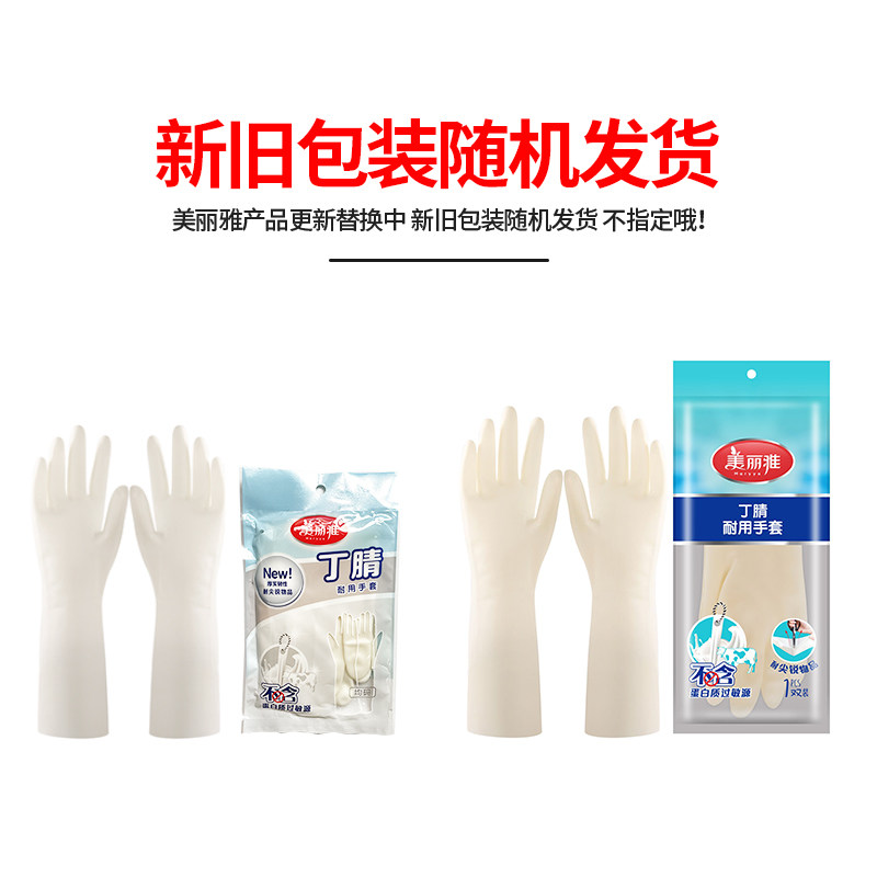 📚 美丽雅手套厨房女洗碗家用家务丁腈橡胶皮防水加长加厚耐用型防滑