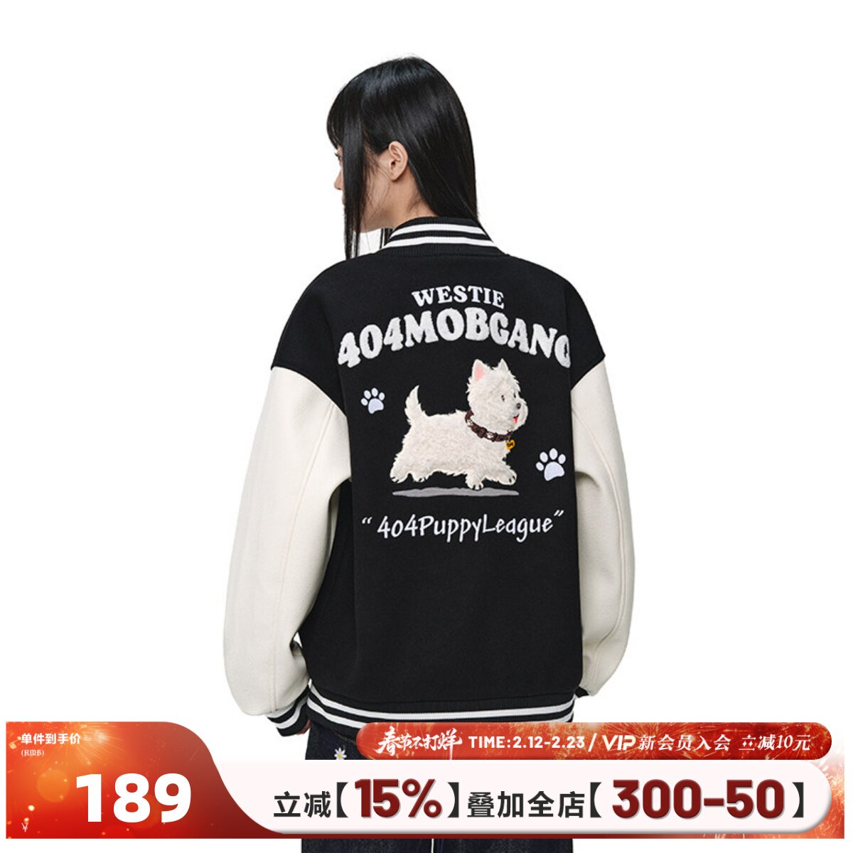 📚 404MOB可爱毛绒小狗刺绣2025棒球服外套男女美式宽松学院设计夹克