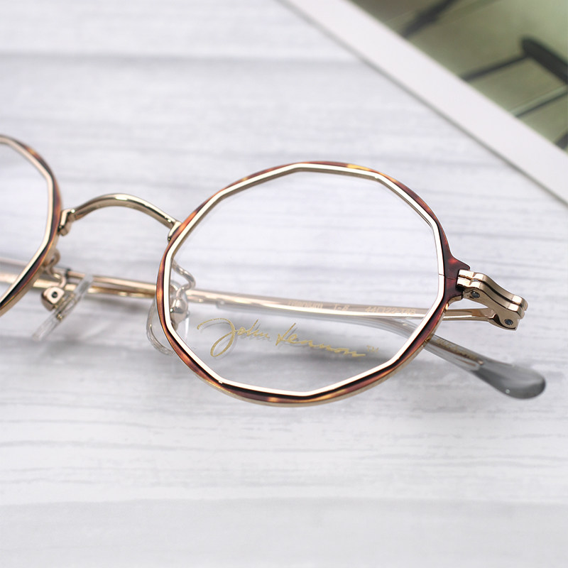 📚 日本约翰列侬眼镜框高度数近视全框复古小圆框金丝手工眼镜架P303