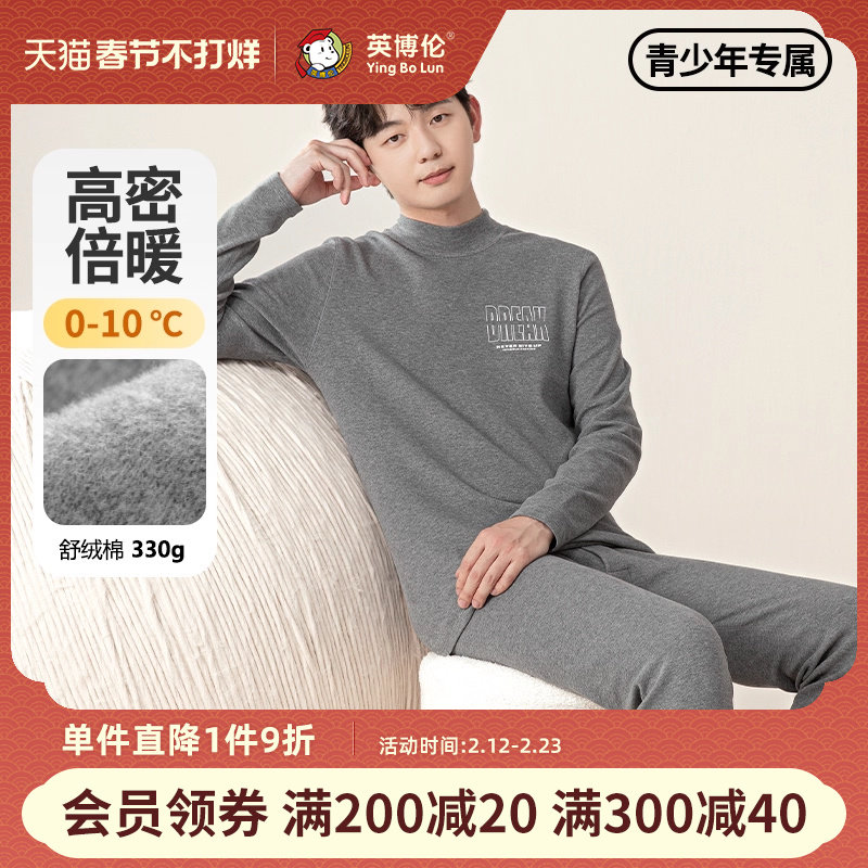 📚 英博伦冬季青少年保暖内衣套装男大童加厚秋衣秋裤纯棉中领棉毛衫