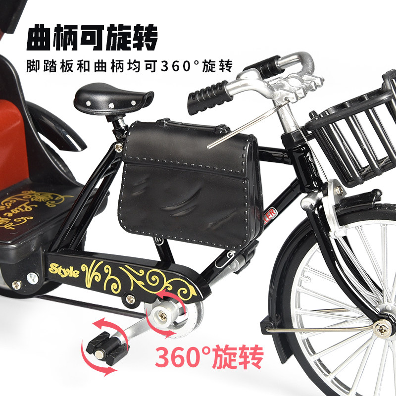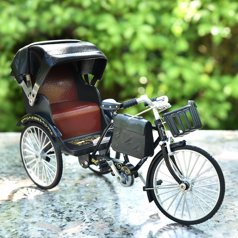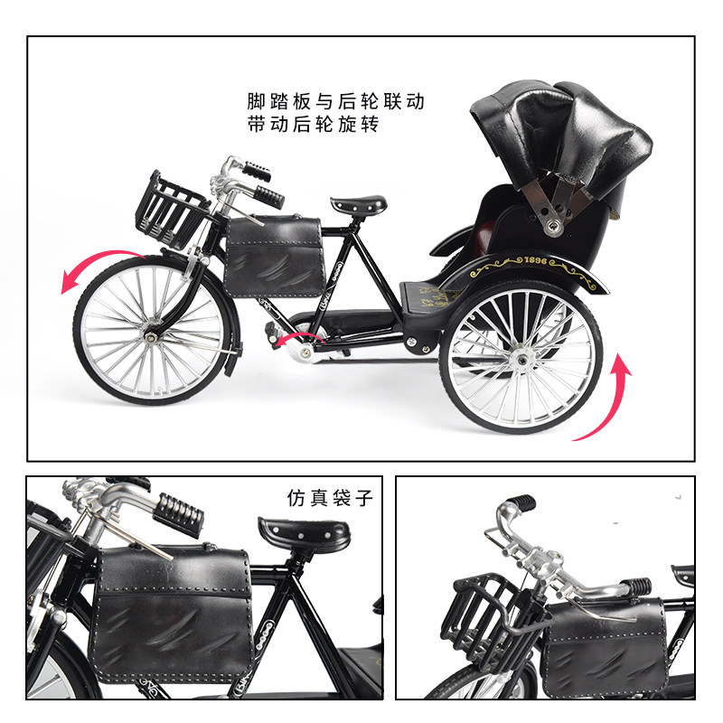 📚 仿真复古黄包车模型摆件人力三轮自行车怀旧合金经典玩具车男孩