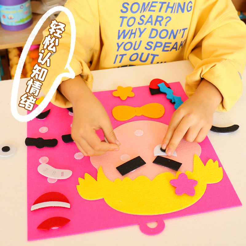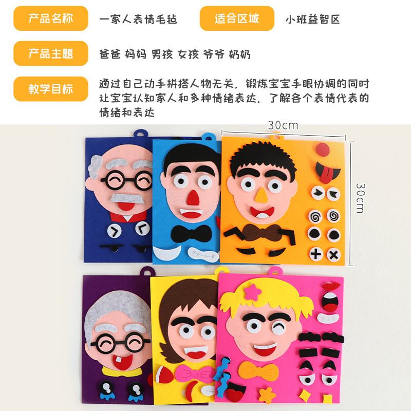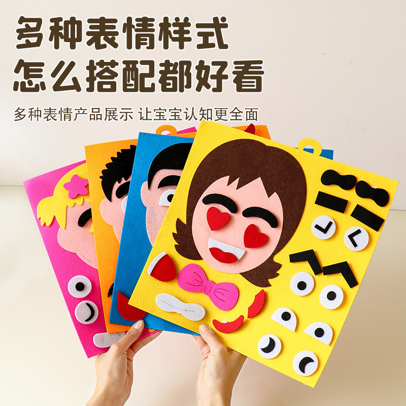 📚 毛毡不织布手工材料包五官变变变换表情贴教具情绪幼儿园娃娃家