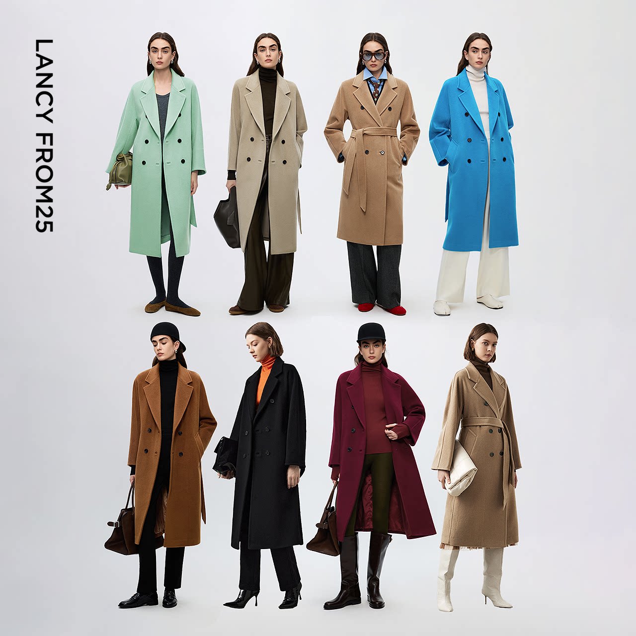📚 【王楚然同款】朗姿25纯羊毛法式通勤大衣修身毛呢外套冬季新款女