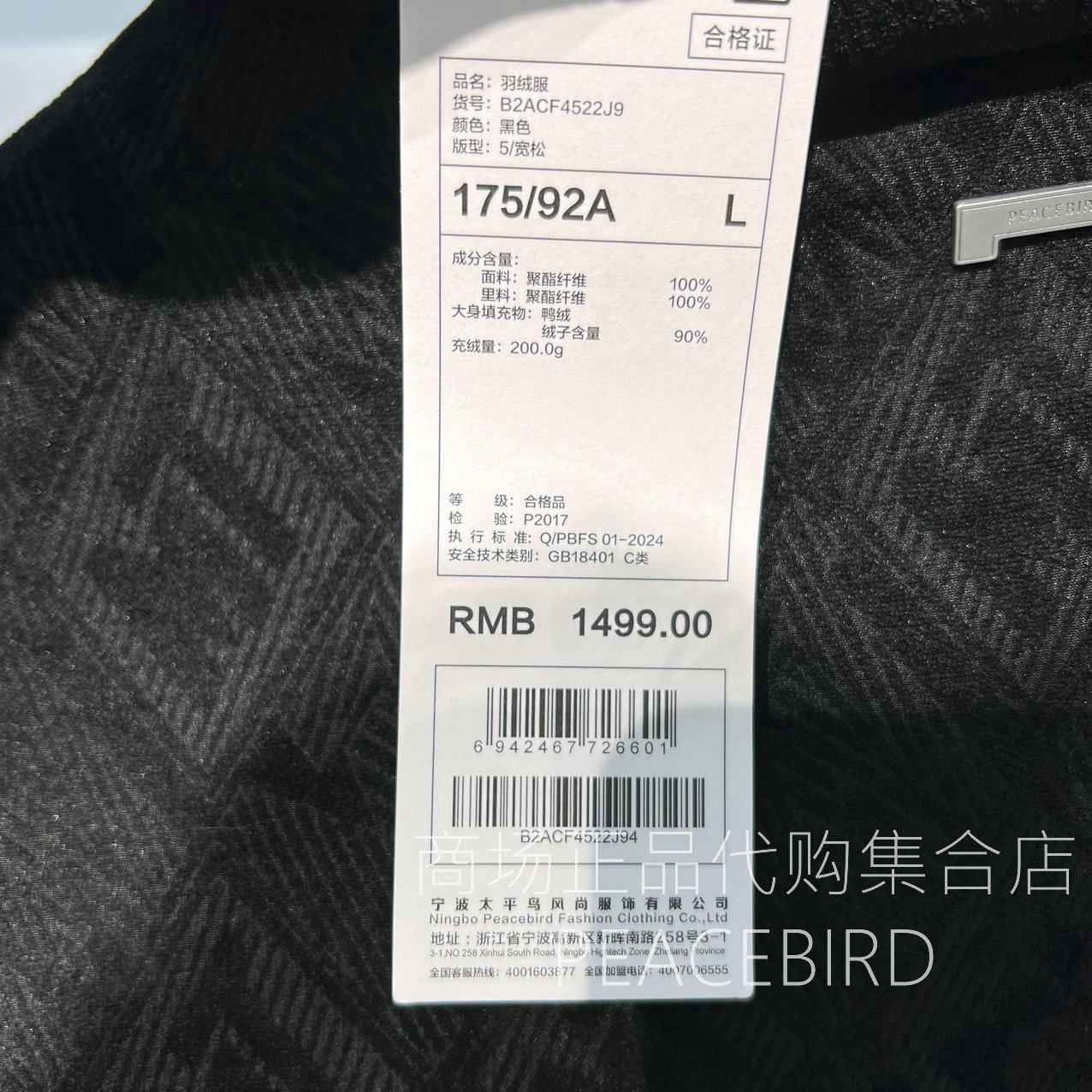 📚 B2ACF4522J9 太平鸟男装2025年百搭冬季专柜正品国内代购羽绒服