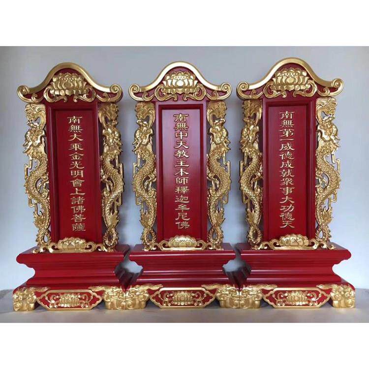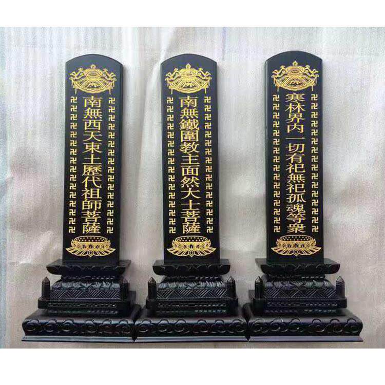 📚 实木红色斋天牌位一套三尊木牌位焰口黑色木牌位