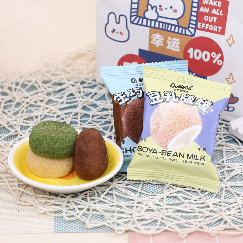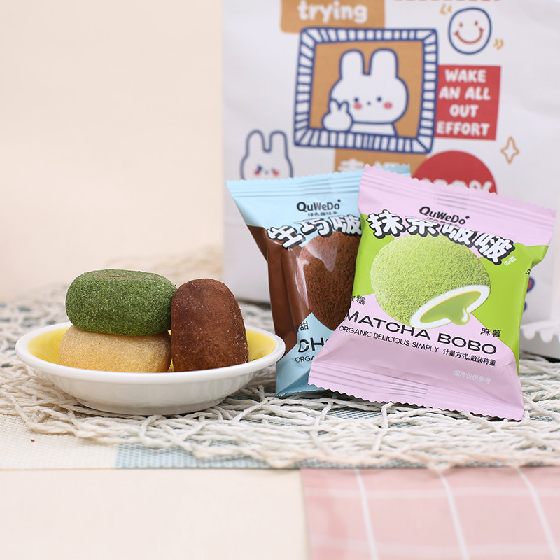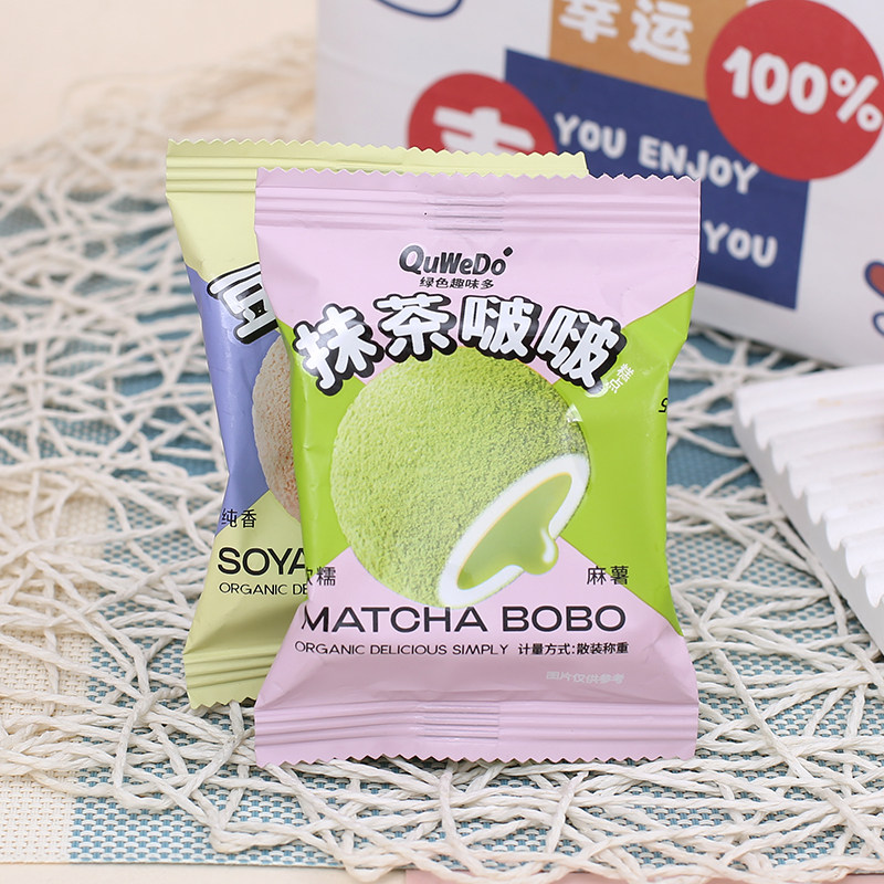 📚 绿色趣味多生巧福团麻薯团子抹茶豆乳味夹心糯米糍传统糕点小零食
