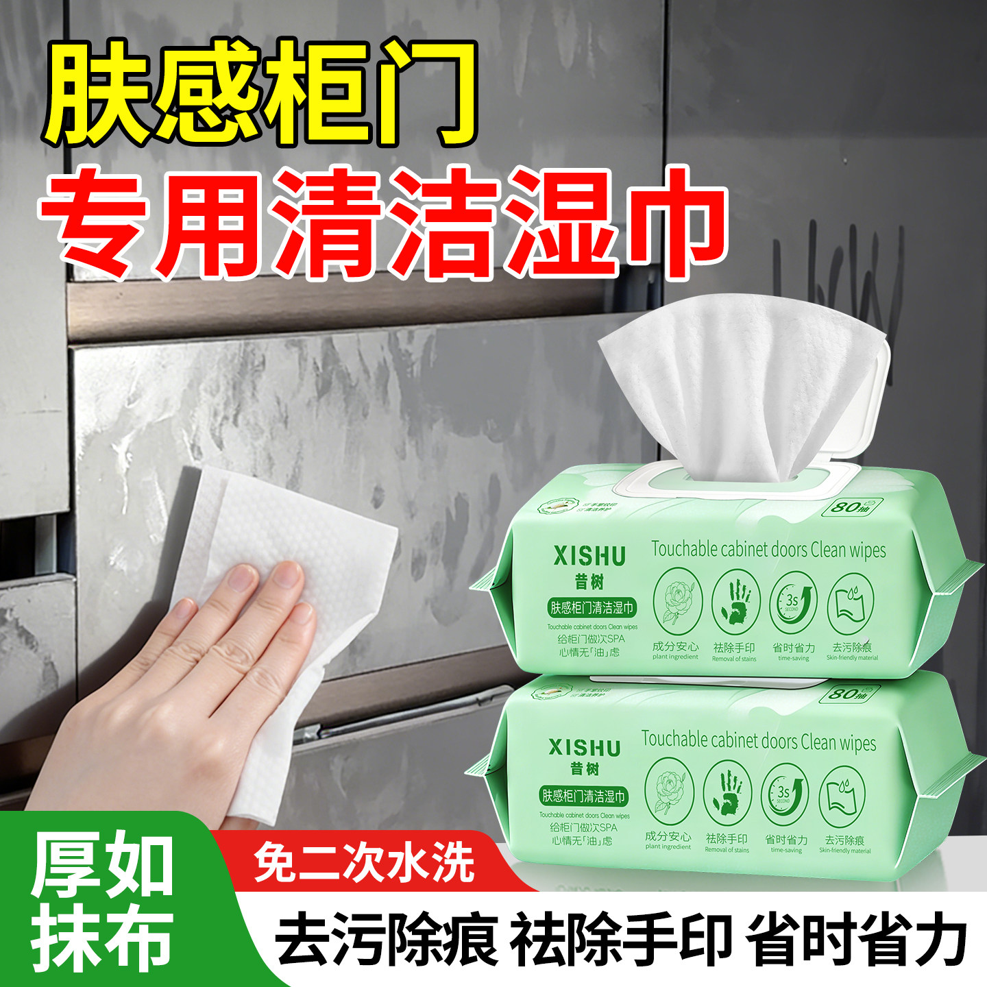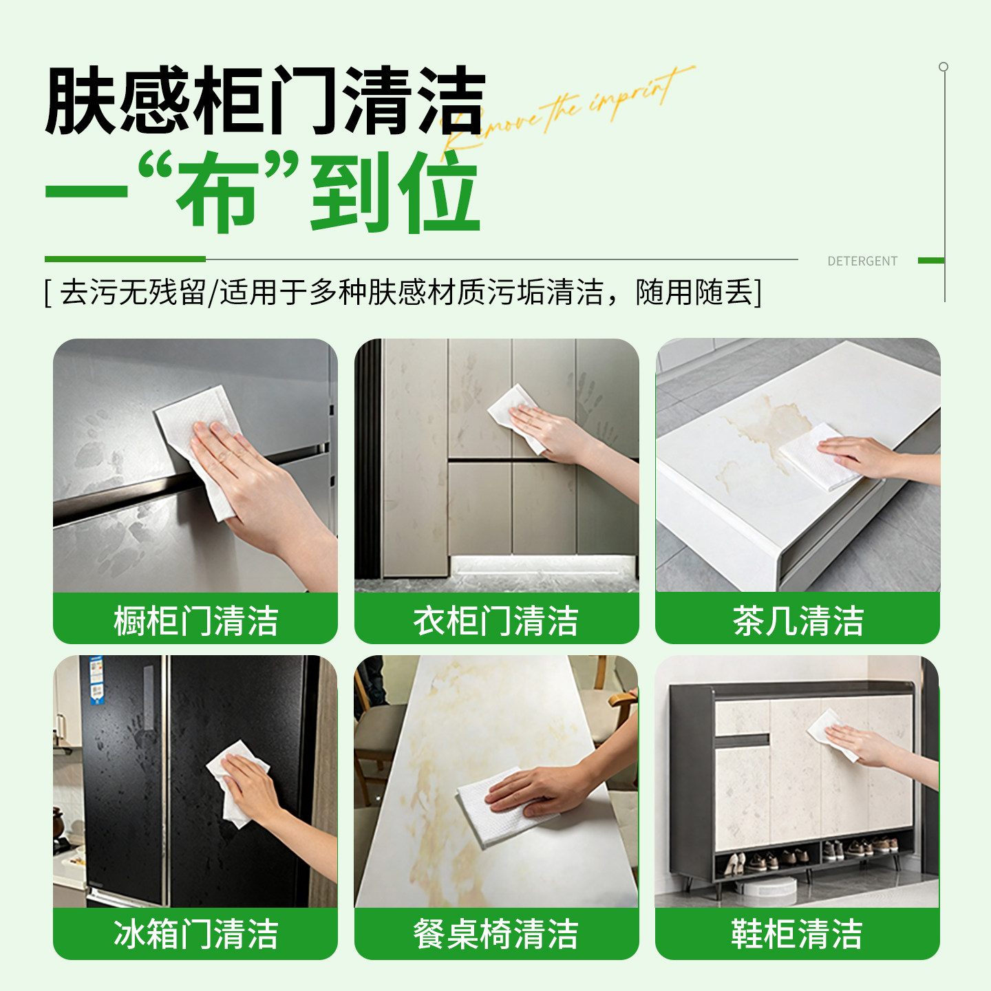 📚 肤感柜门清洁湿巾擦白色衣柜橱柜发黄油污手印专用冰箱门清洗神器
