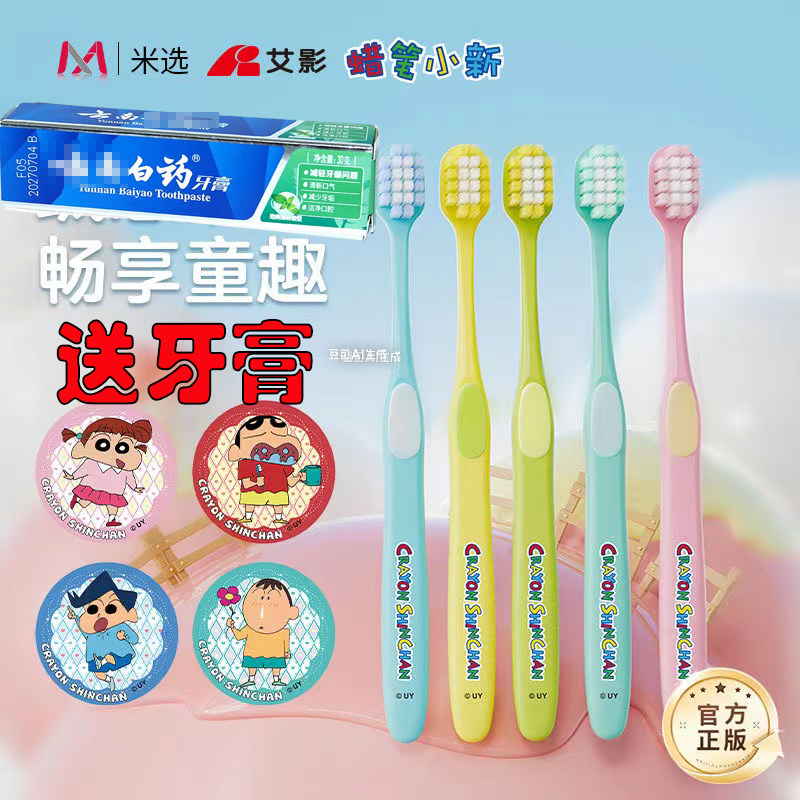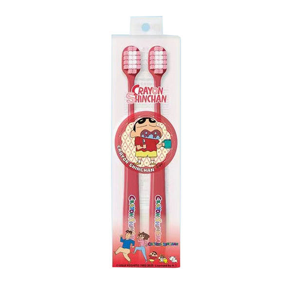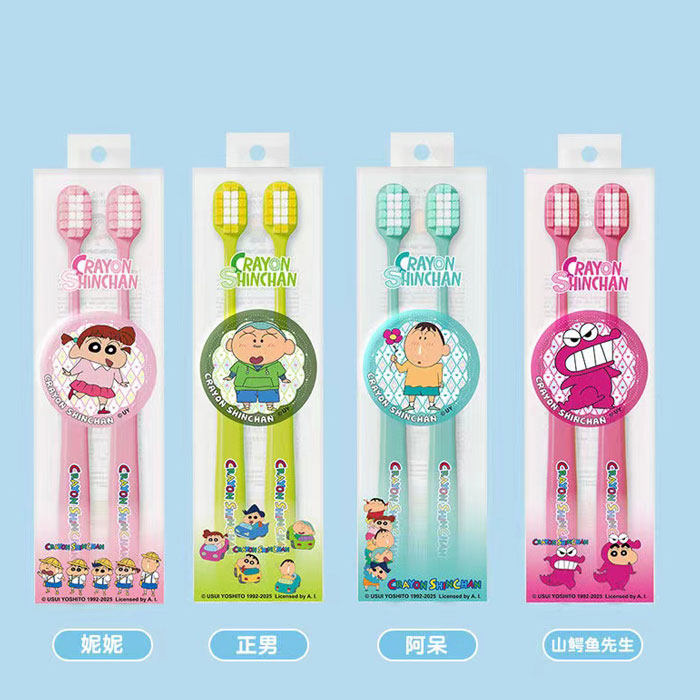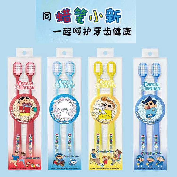 📚 米选蜡笔小新联名成人宽头高密软毛牙刷家庭装护龈学生情侣带徽章