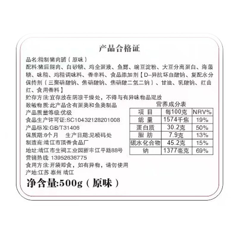 📚 靖江特产猪肉脯500g散装负片正片原味蜜汁猪肉干肉铺边角料零食