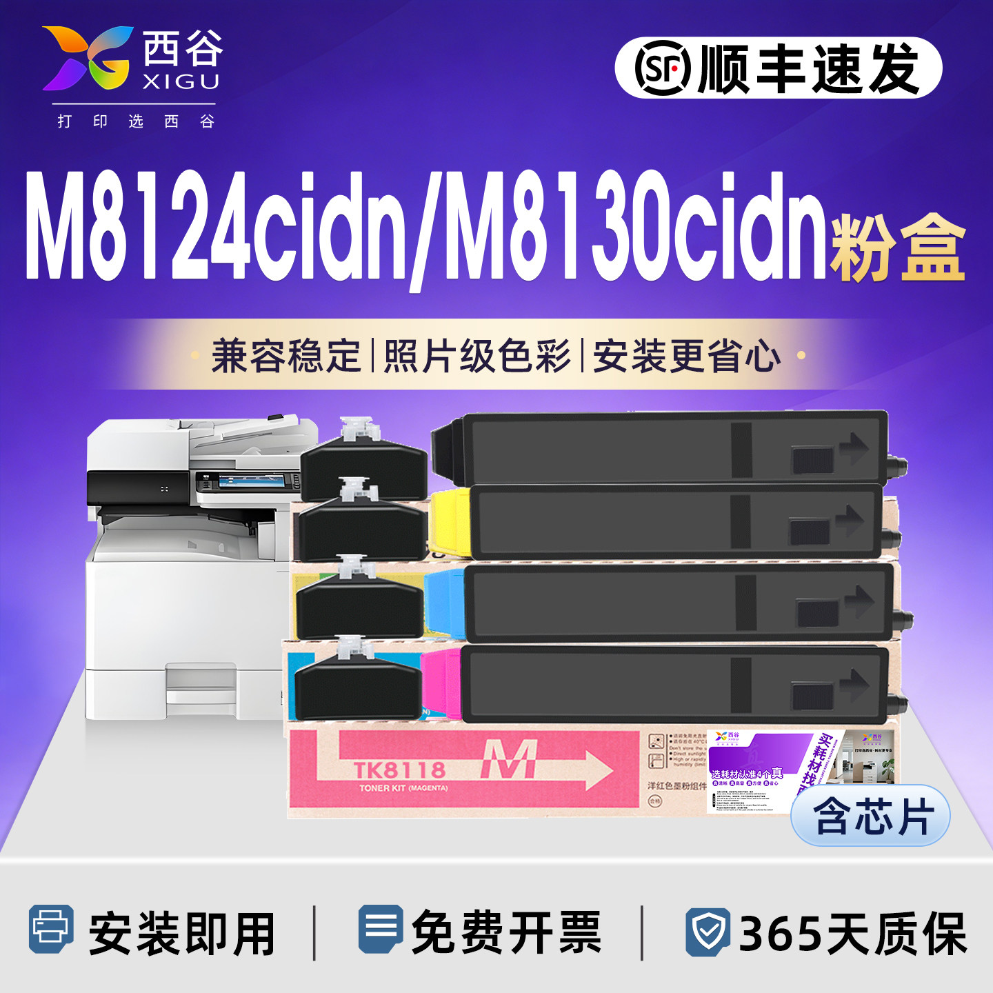 📚 西谷适用于京瓷M8124cidn粉盒M8130cidn M8224 8024 8228 8520 8525mfp 898 TK8118 8108含芯片上机即用