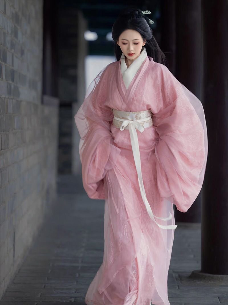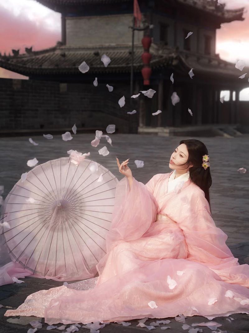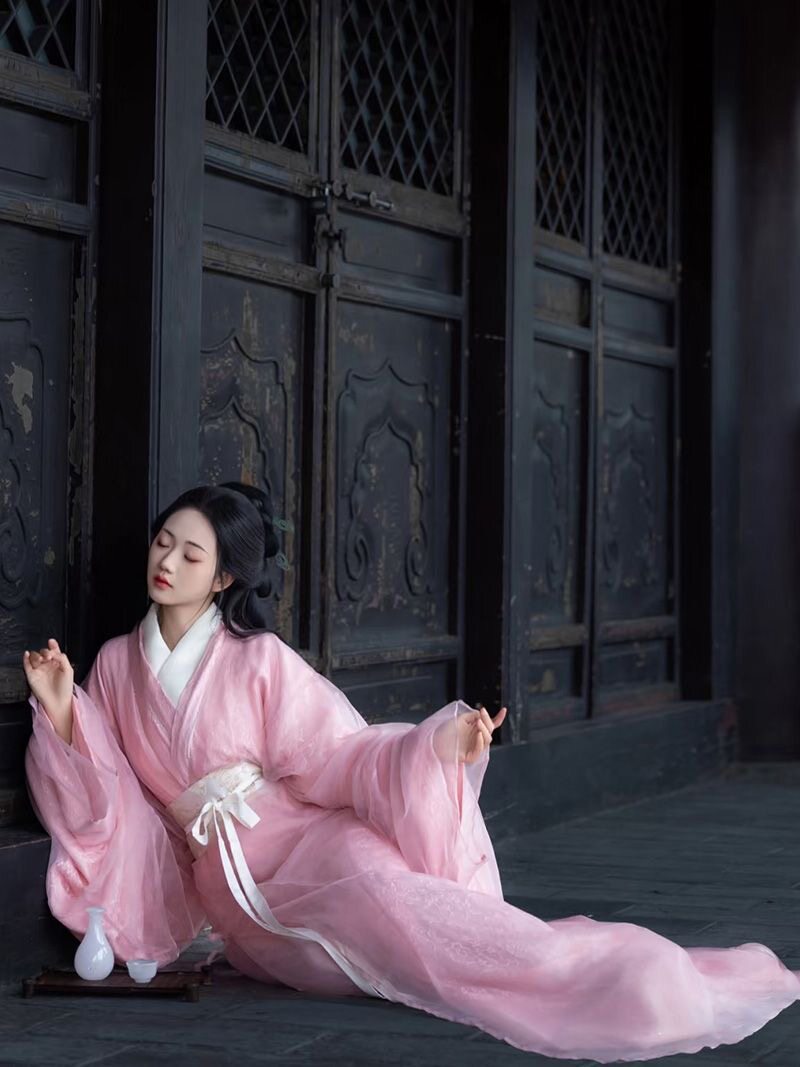 📚 新款粉色战国袍樱落复原直裾汉服交领日常古风绝美仙气