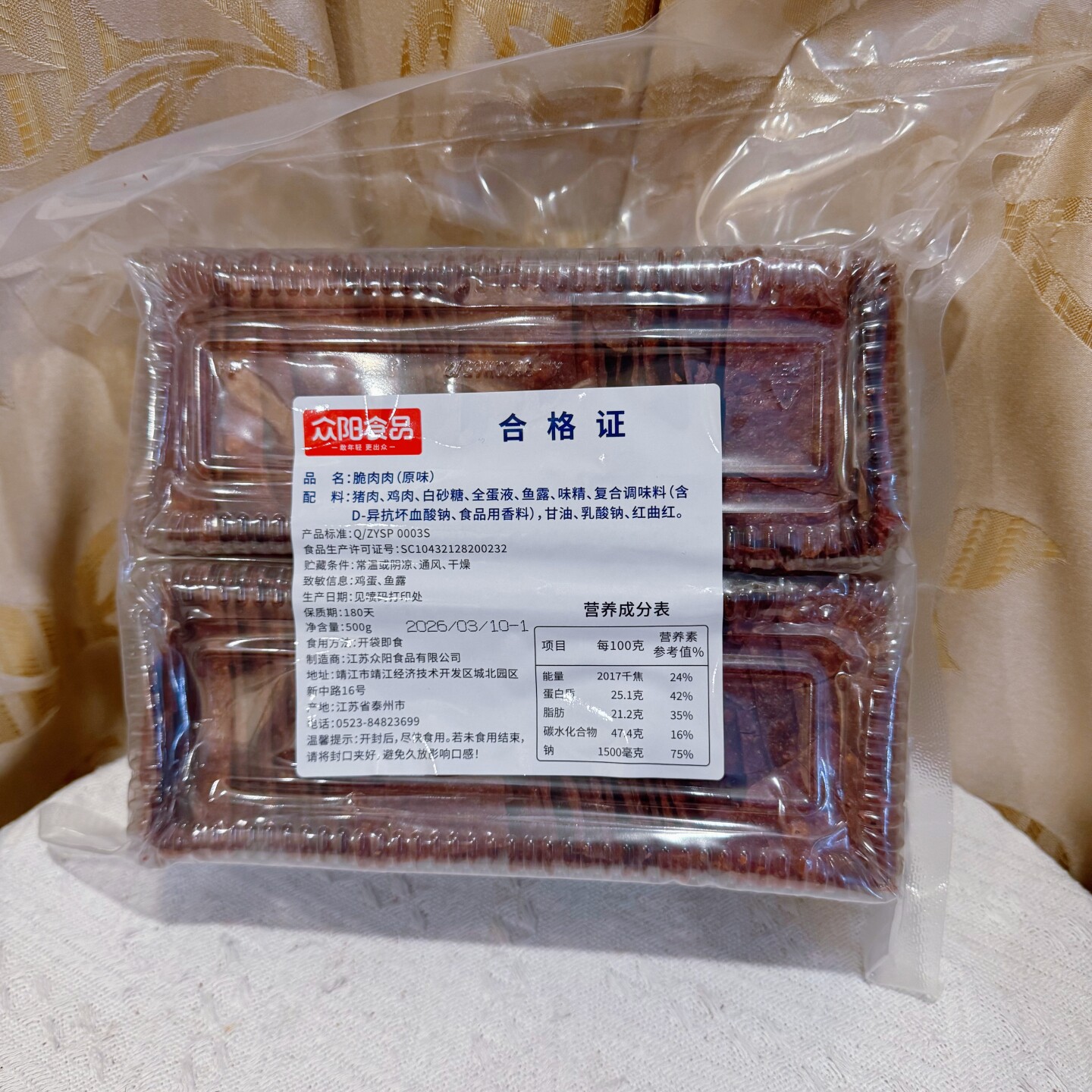 📚 众阳食品脆肉肉原味500g袋装薄脆肉铺猪肉解馋网红追剧办公室零食