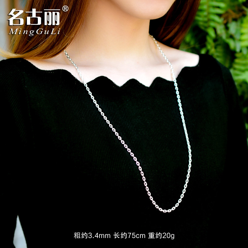 📚 纯银项链女足银十字链子白银闪O字链简约个性时尚韩版毛衣链长款
