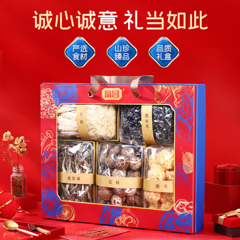 📚 富昌菌菇礼盒山珍干菌蘑菇干货菌品天下黑木耳竹荪春节礼品福利