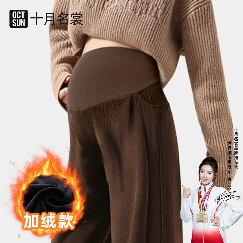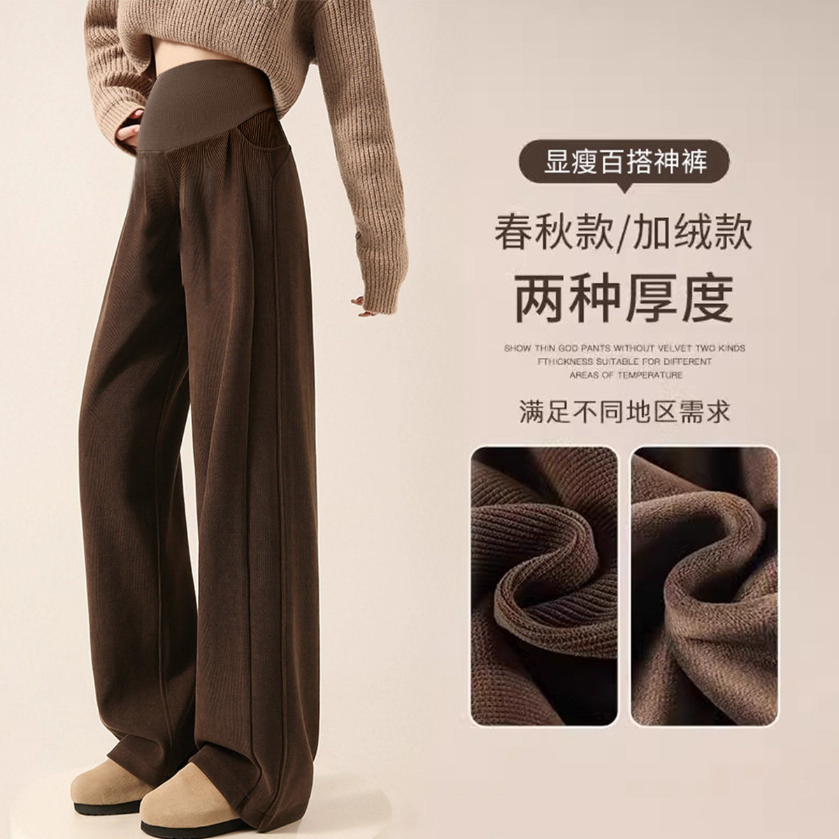 📚 灯芯绒孕妇裤子秋冬外穿阔腿加绒棕色加厚装不勒肚子托腹2025新款