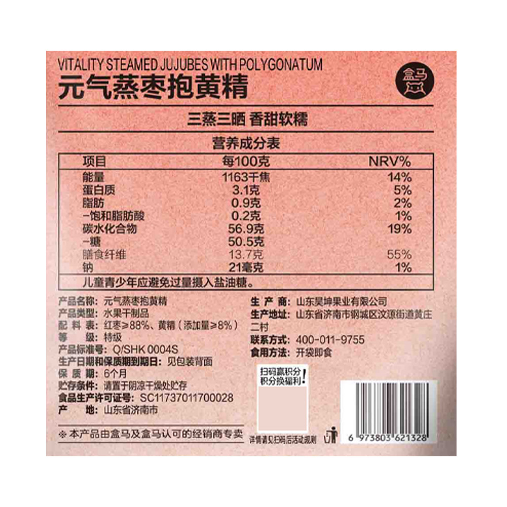 📚 盒马元气蒸枣抱黄精150g去皮无核肉厚药食同源营养健康休闲零食