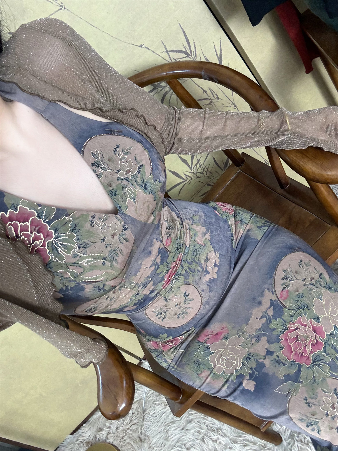📚 画报夫人原创自制高级烫金挂脖连衣裙 杜若