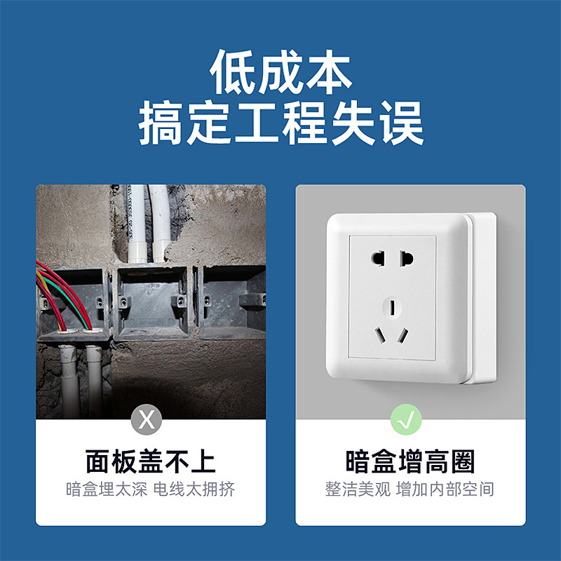 📚 86型底盒加高圈明装加深无底盒套开关插座暗盒垫圈pvc线盒增高圈