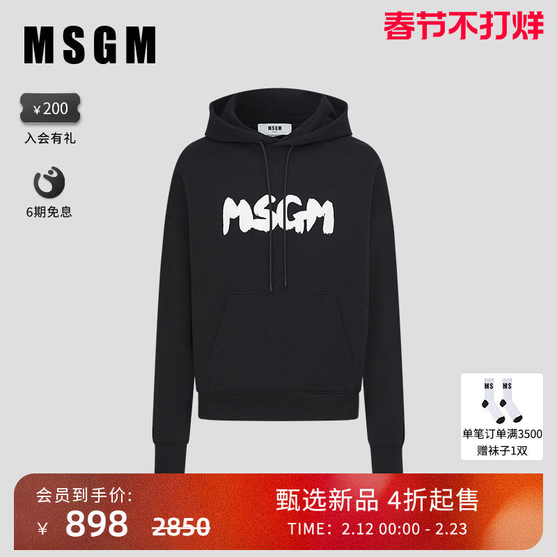 📚 MSGM秋冬新款男士针织纯棉外套长袖连帽卫衣男款秋季黑色美式复古