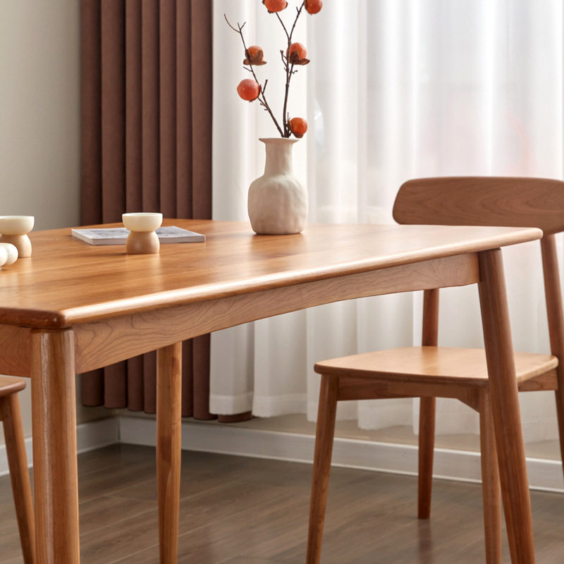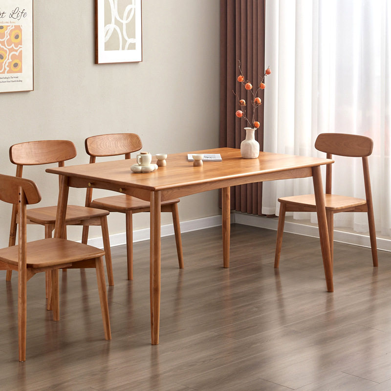 📚 北欧简约实木樱桃木餐桌黑胡桃木小户型长方形饭桌白橡木书房书桌