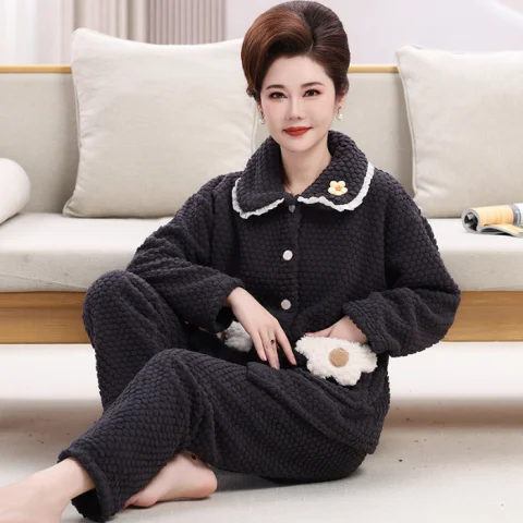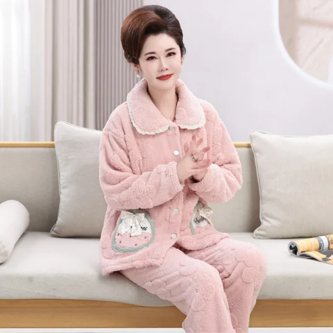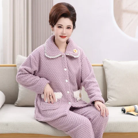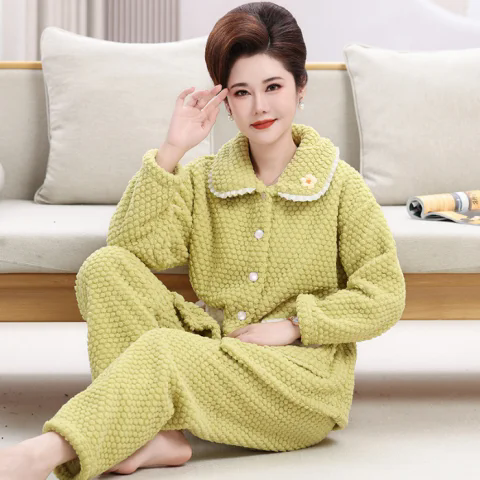 📚 年轻妈妈冬季法兰绒睡衣中年妇女加厚家居服阿姨保暖长袖长裤套装