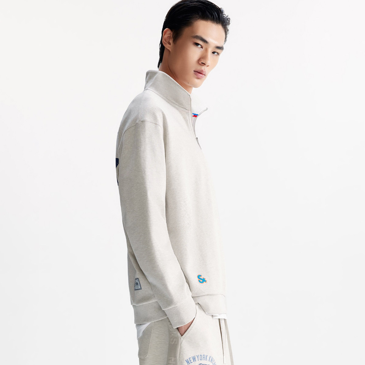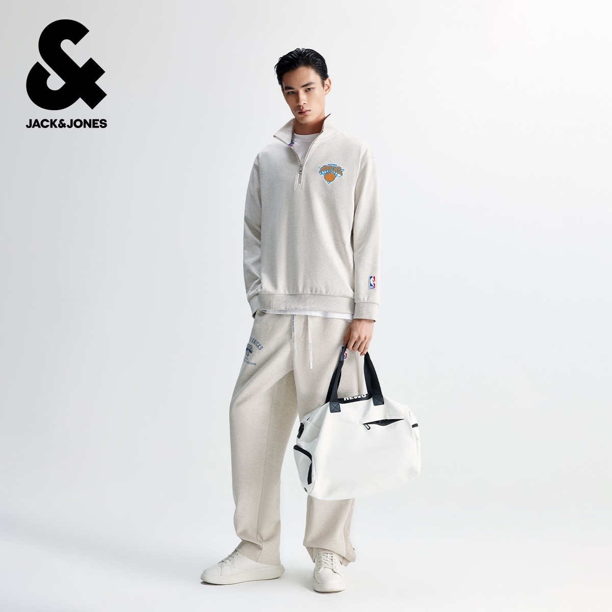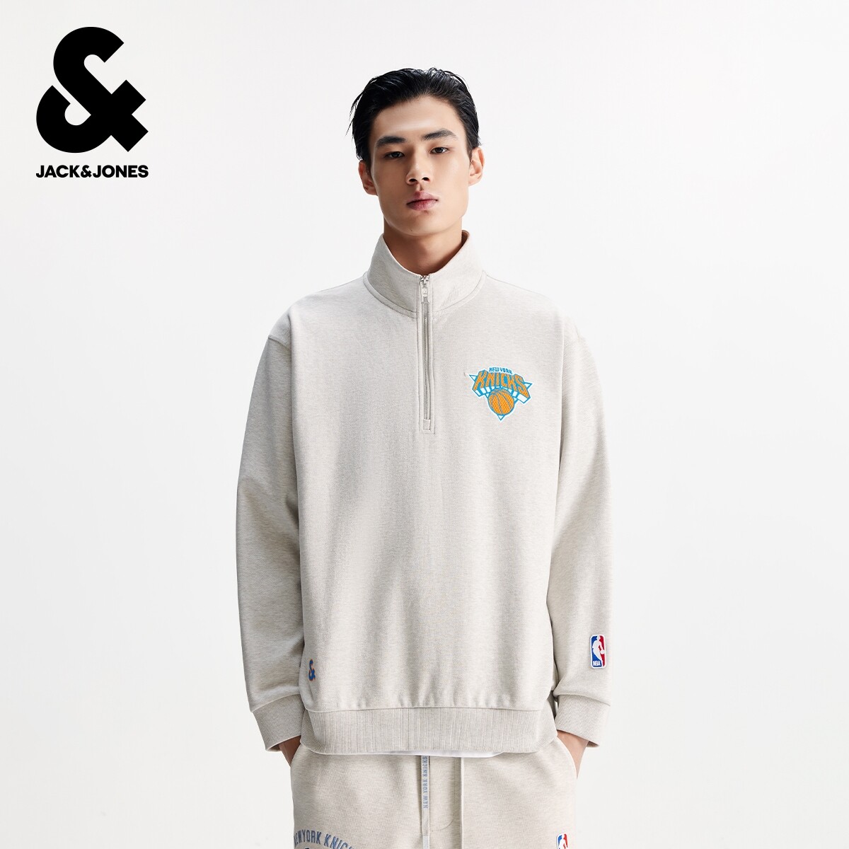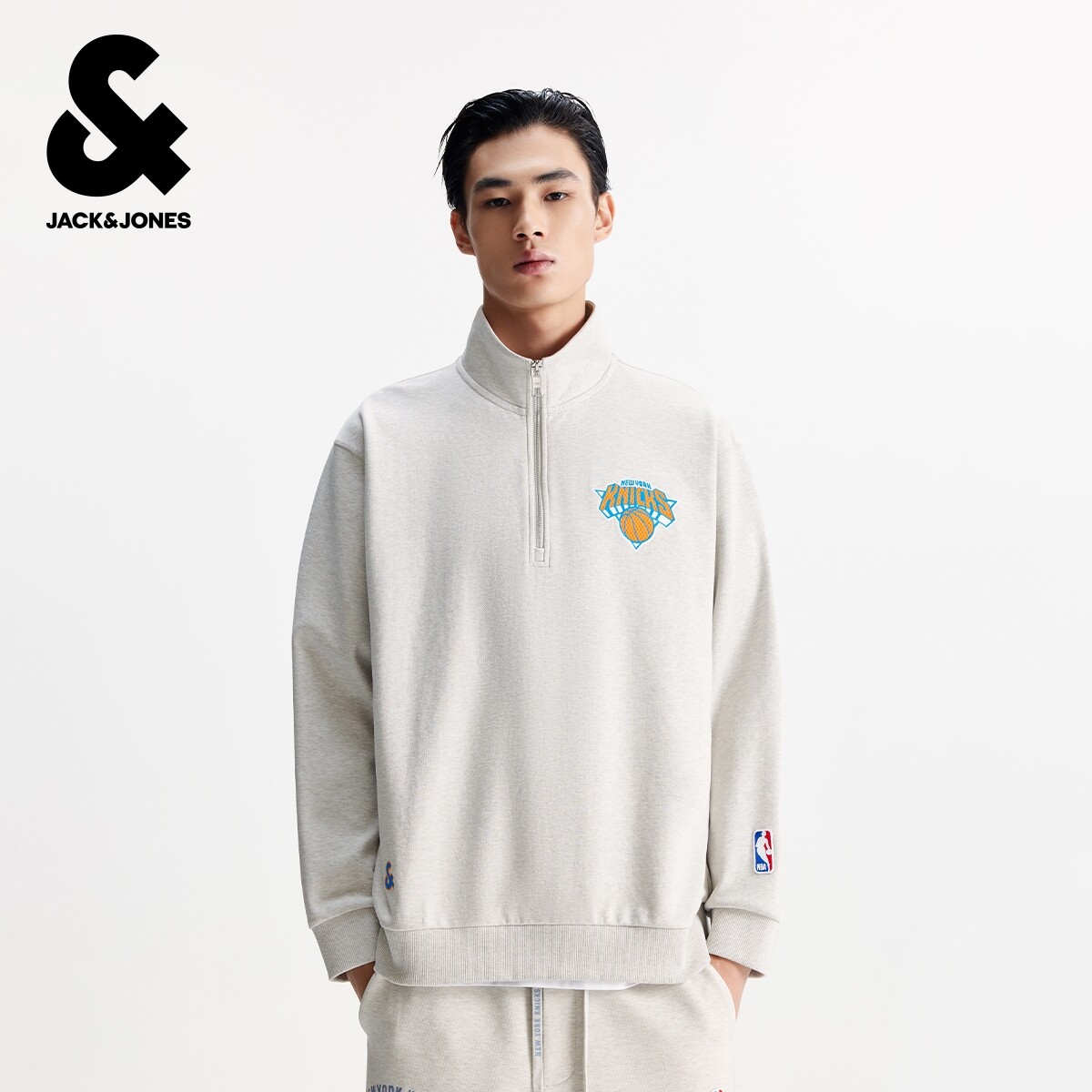 📚 杰克琼斯NBA联名款男装秋季新款尼克斯队休闲舒适宽松半高领卫衣