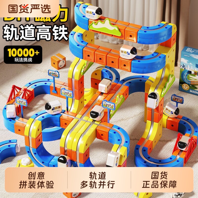 📚 魔幻磁力轨道车DIY积木立方体拼装儿童高铁玩具男孩2026新年礼物