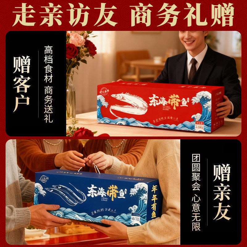 📚 特大带鱼礼盒装5斤整条新鲜冷冻整箱舟山海鲜大礼包年货过年送礼