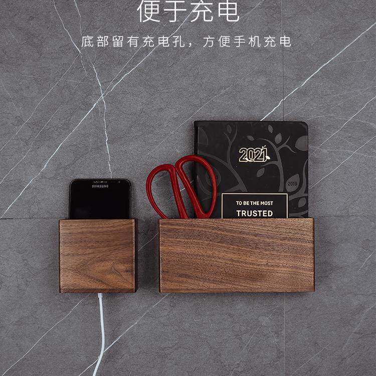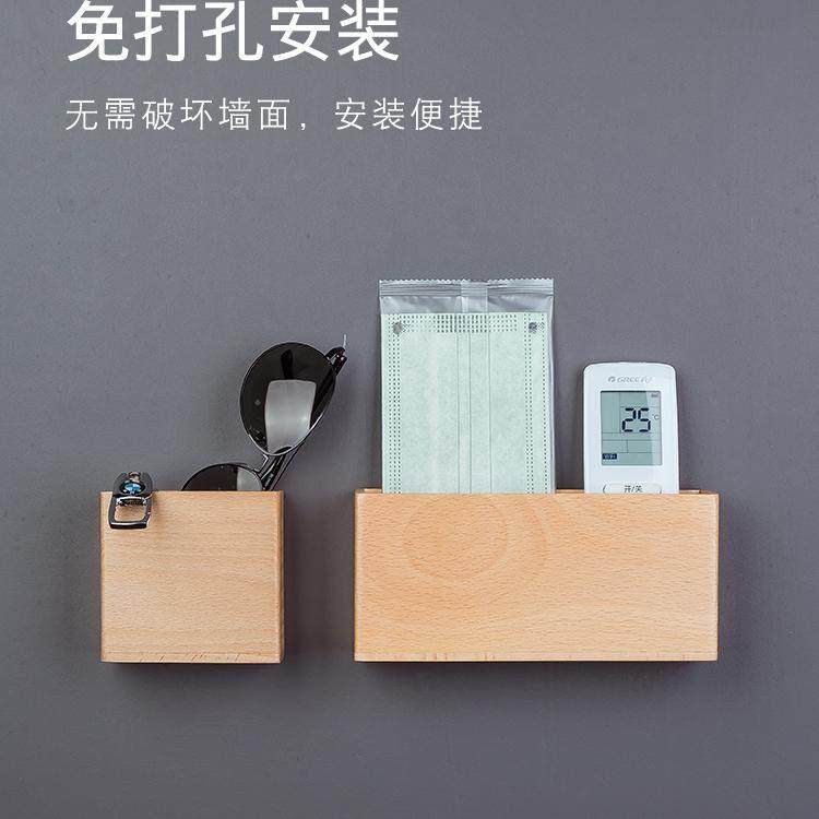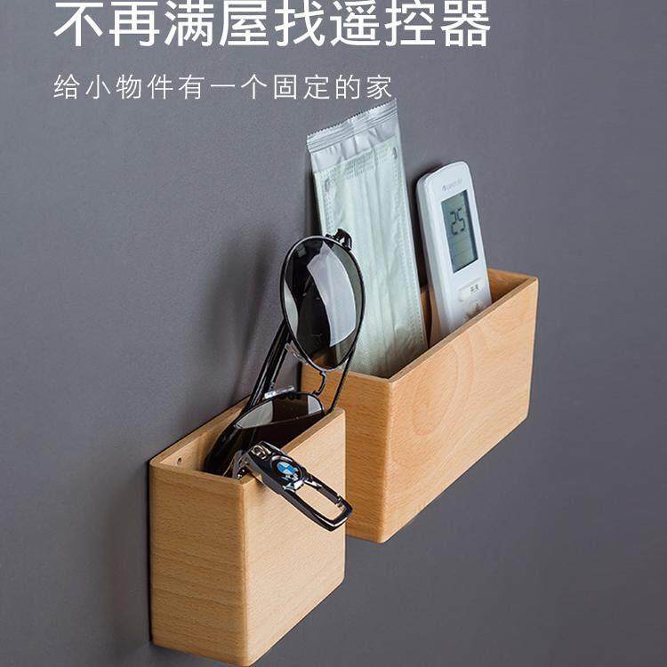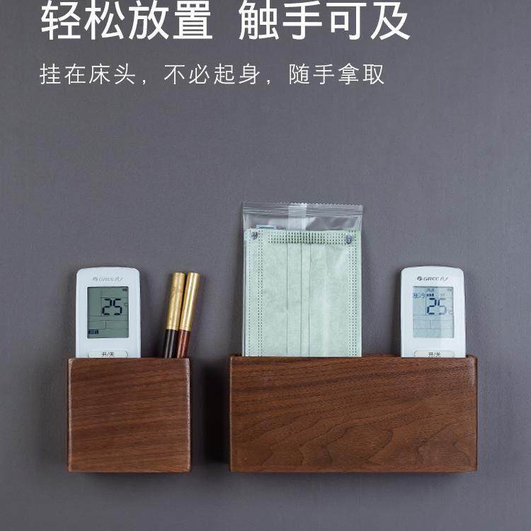 📚 空调电视遥控器收纳盒墙壁挂架置物品架实木免打孔床头放手机充电