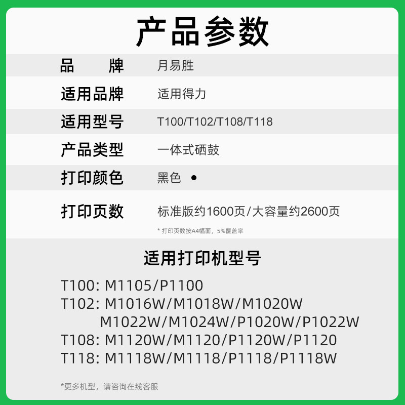 📚 月易胜适用Deli得力P1120硒鼓适用得力T108硒鼓打印机易加粉墨盒粉仓鼓架碳粉盒一体机P1120W碳粉T108A硒鼓