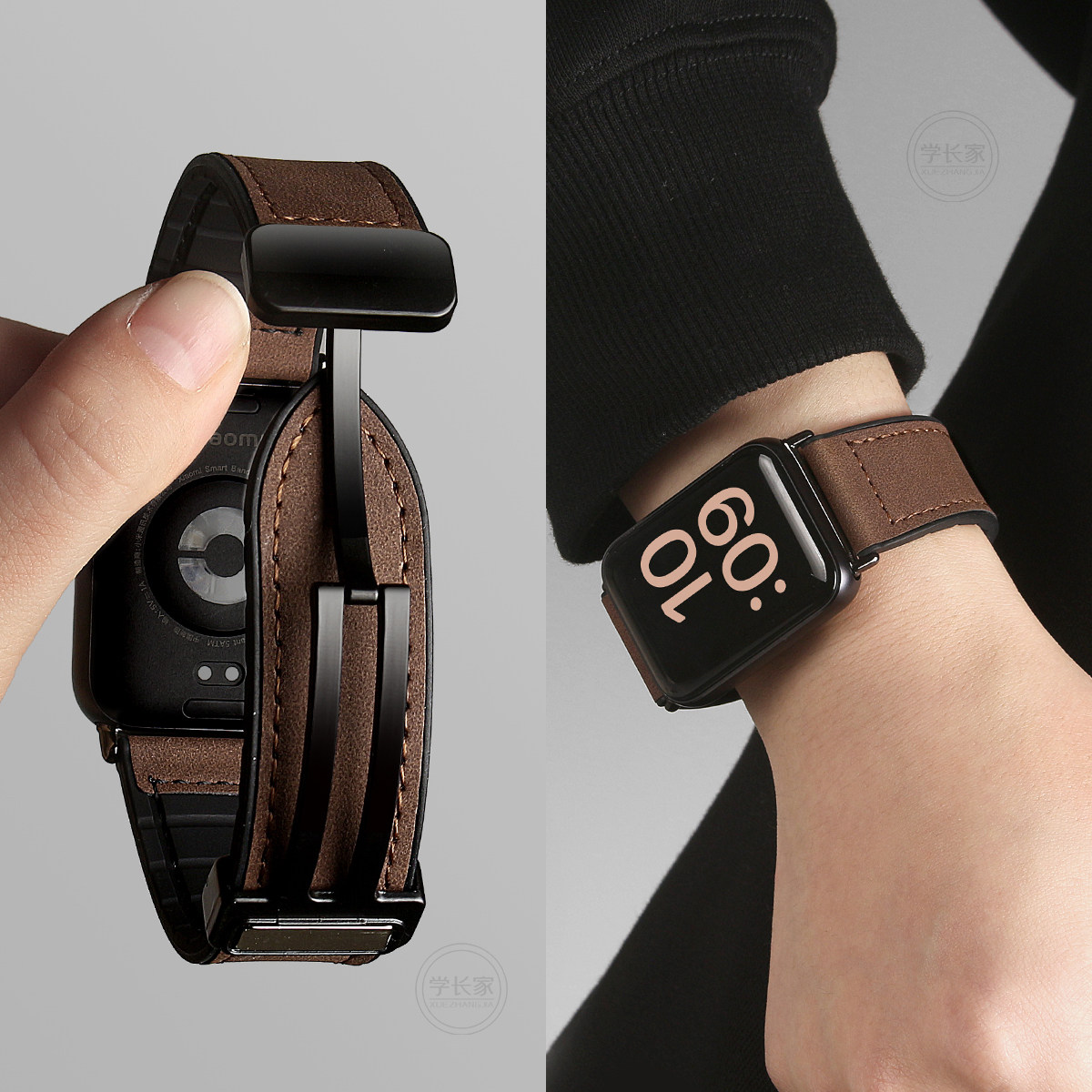 📚 适用小米智能运动手环8/9pro手表带链真皮磁吸redmiwatch4红米手表watch5的表链6新品九代秋冬7版redmi男生