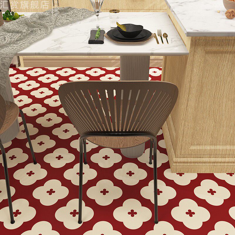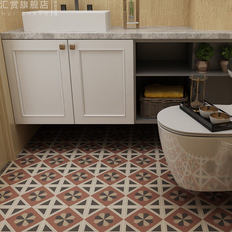 📚 赤贫风花砖卫生间防滑防水油地贴浴室地面翻新自粘厨房家用地板贴