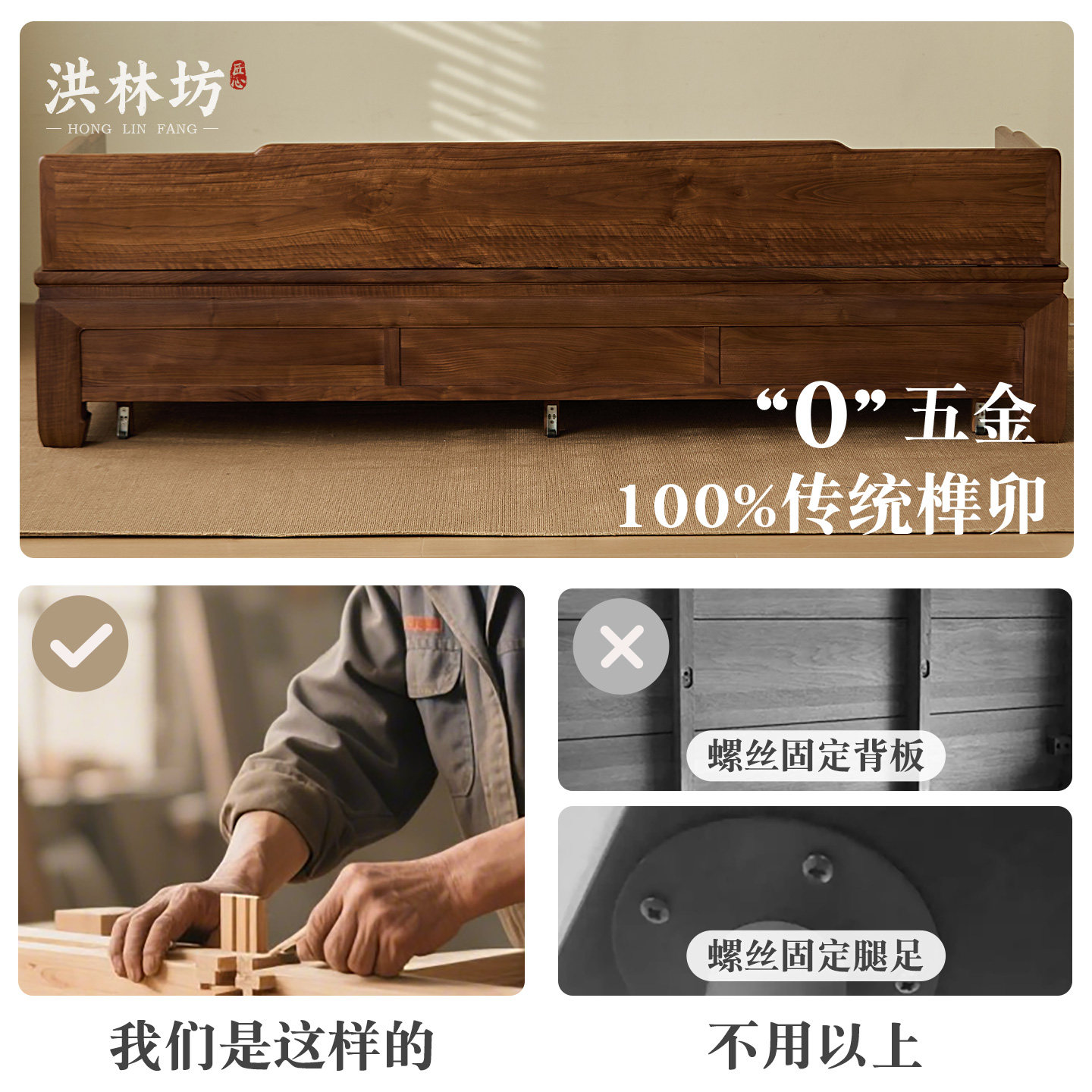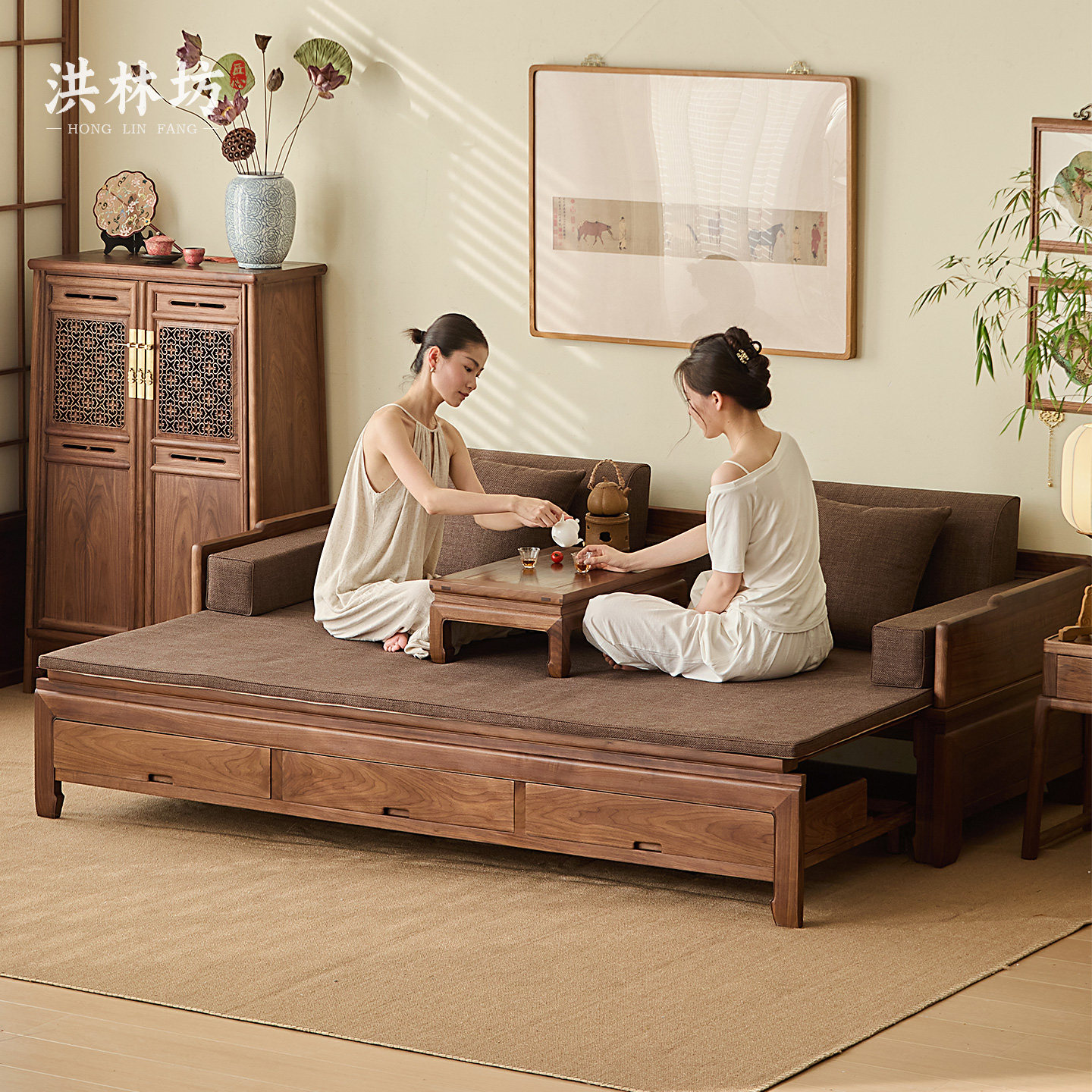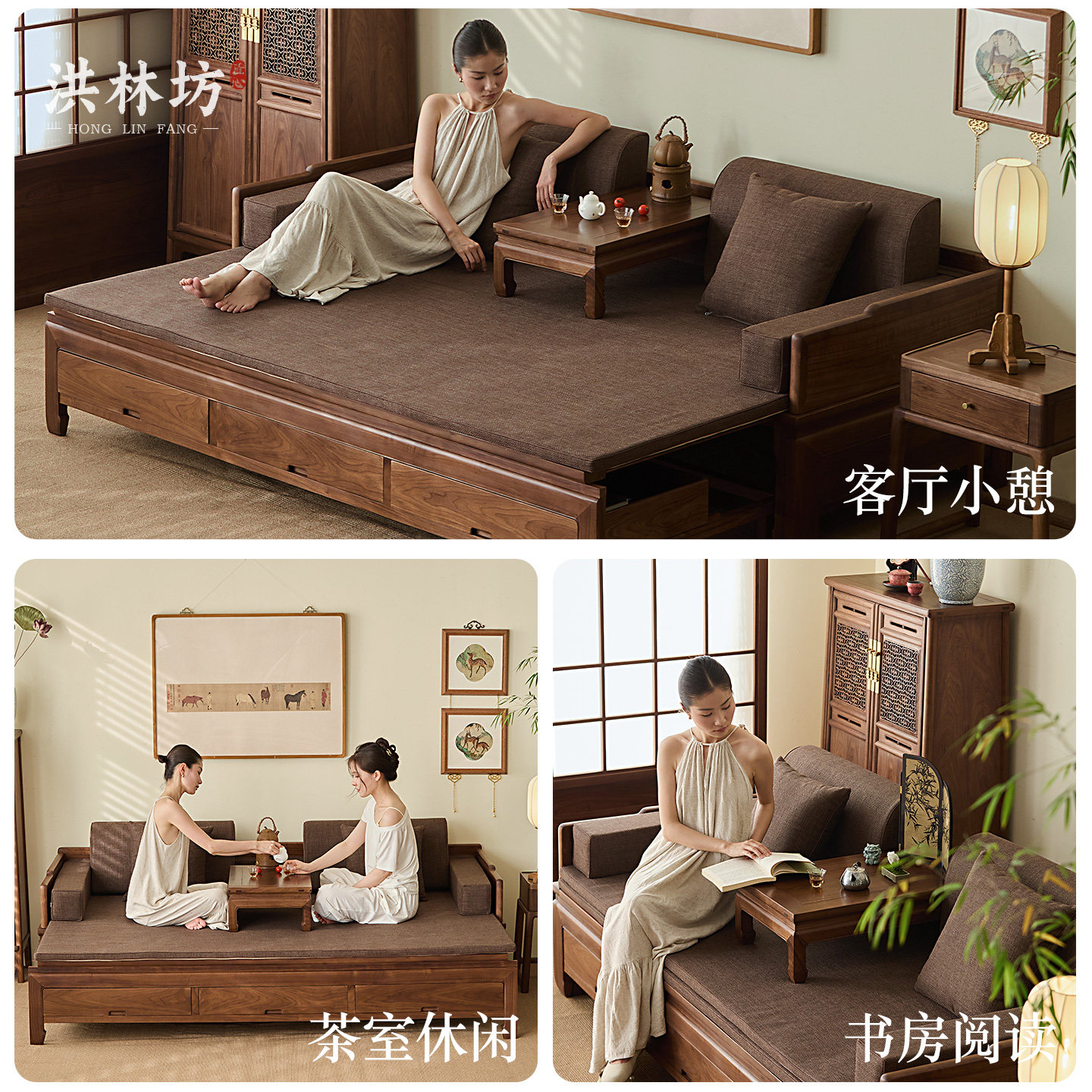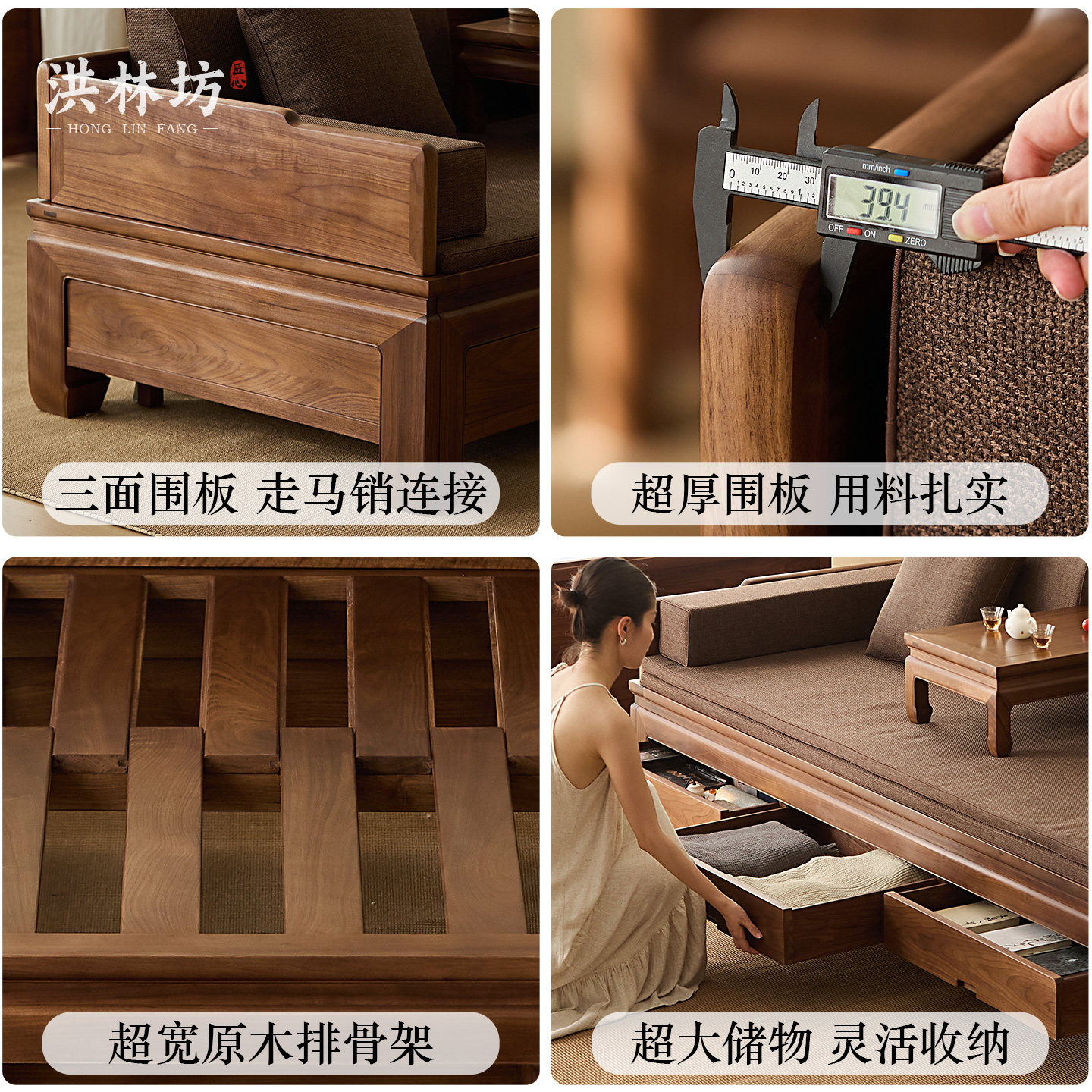 💥"洪林坊新中式北美黑胡桃木推拉实木罗汉床,宋式美学的品质之选,券后仅9350!🎉"