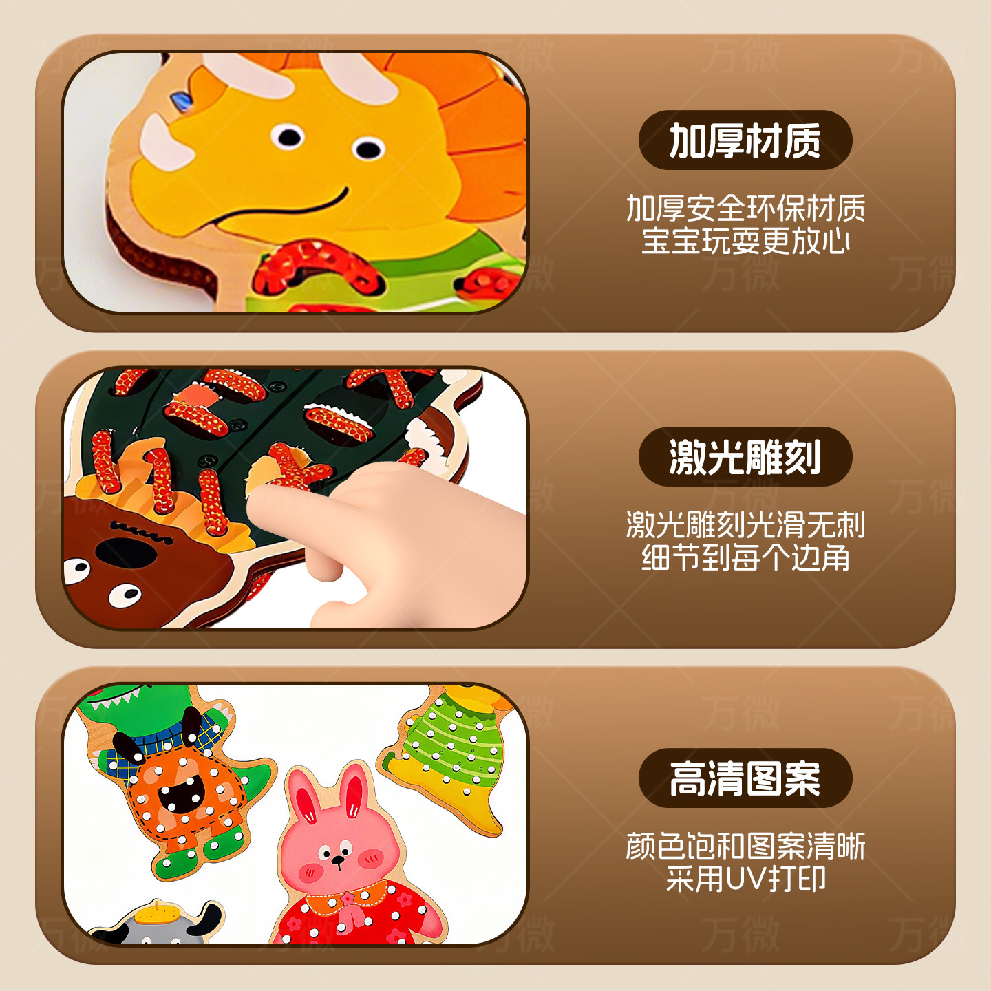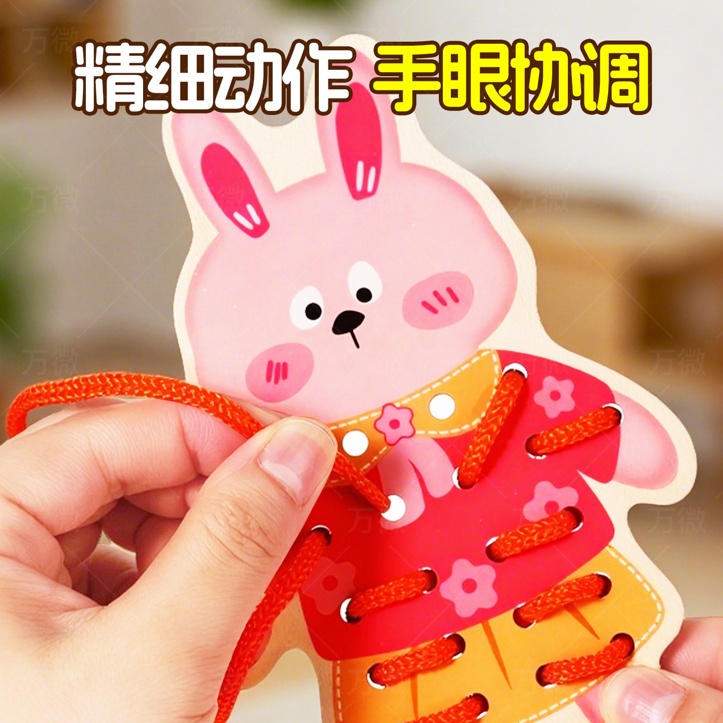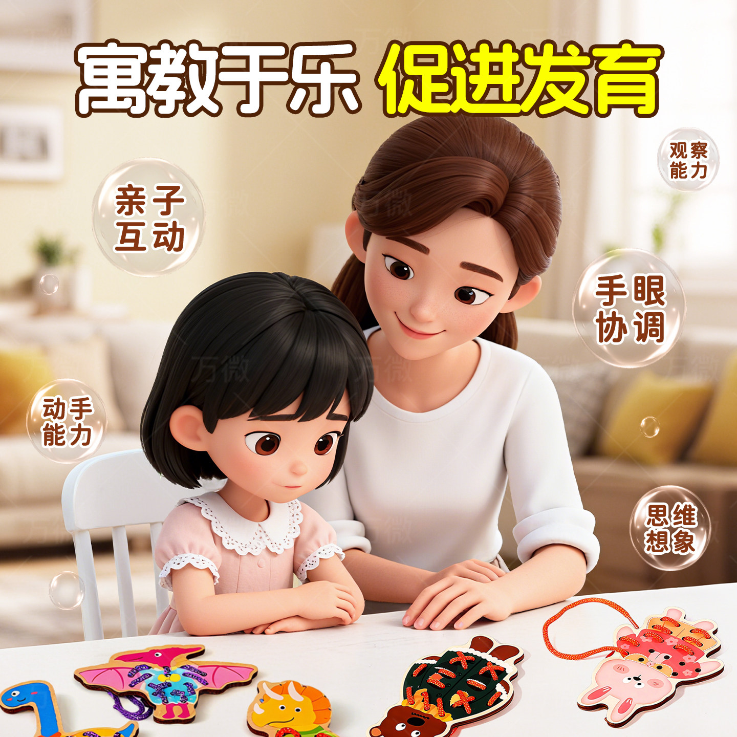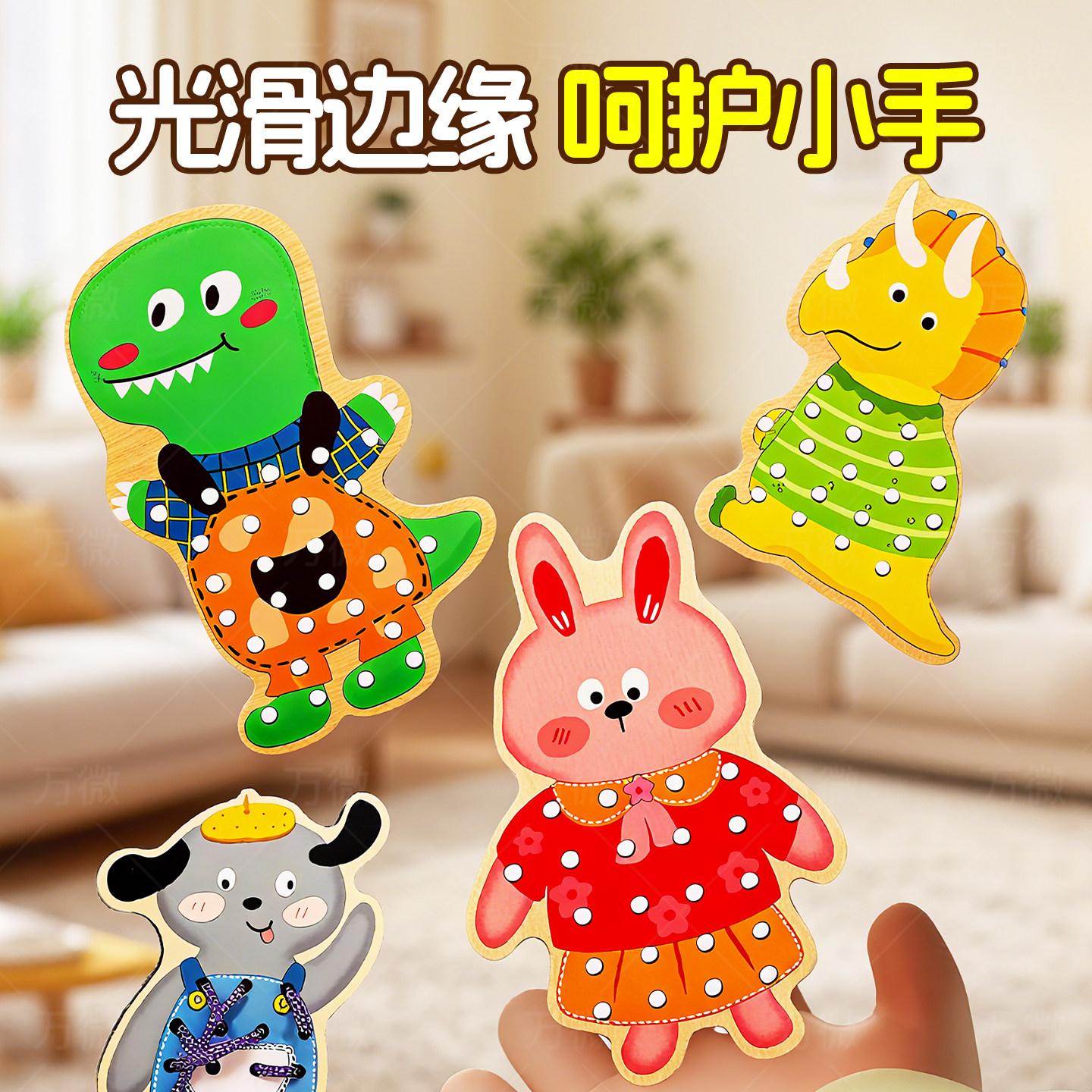 📚 动物穿线板玩具儿童益智早教穿绳子游戏鞋带纽扣宝宝串珠蒙氏教具