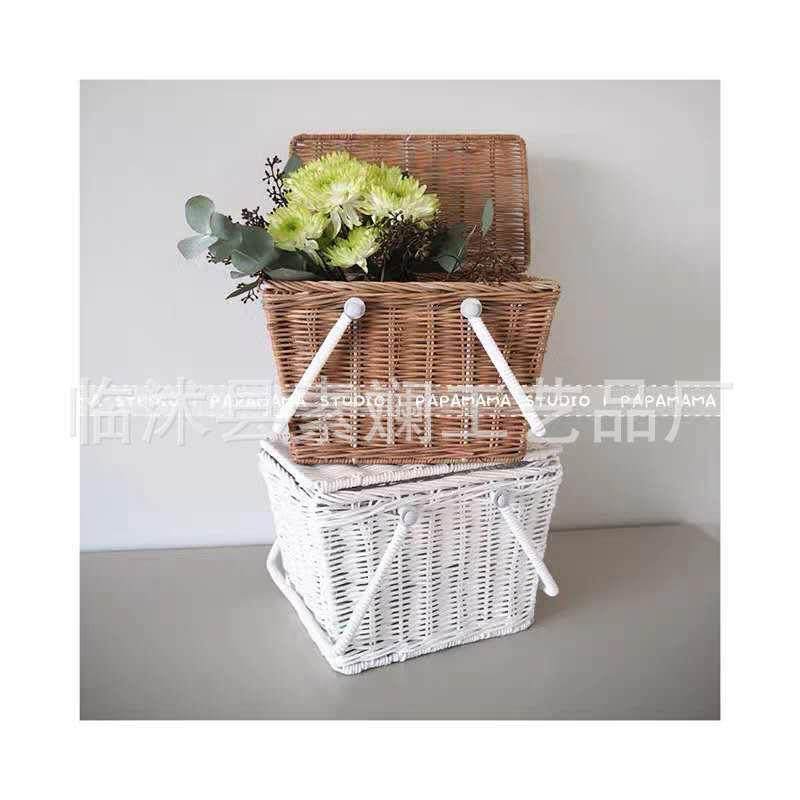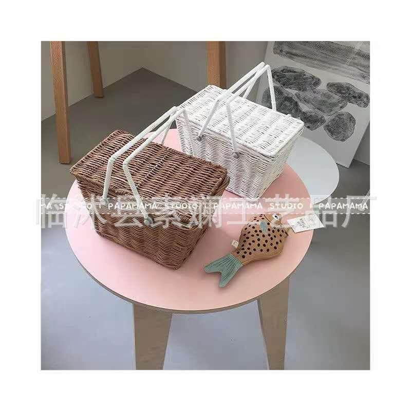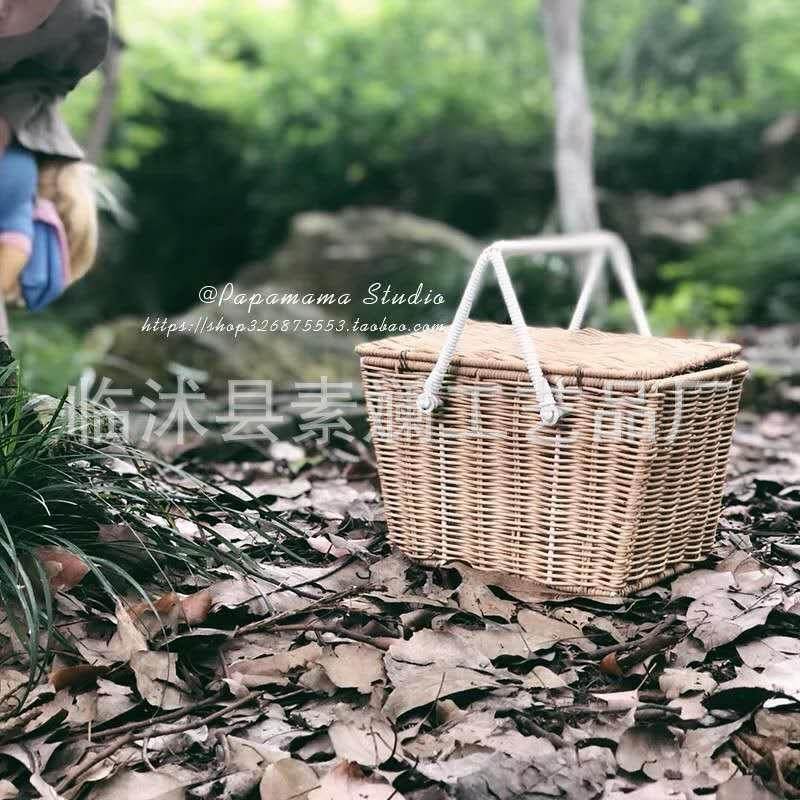 📚 北欧ins网红藤条编织小提篮宝宝户外出游野餐篮收纳篮拍照道具