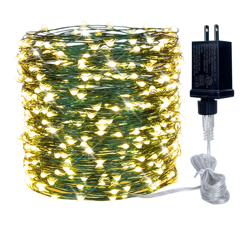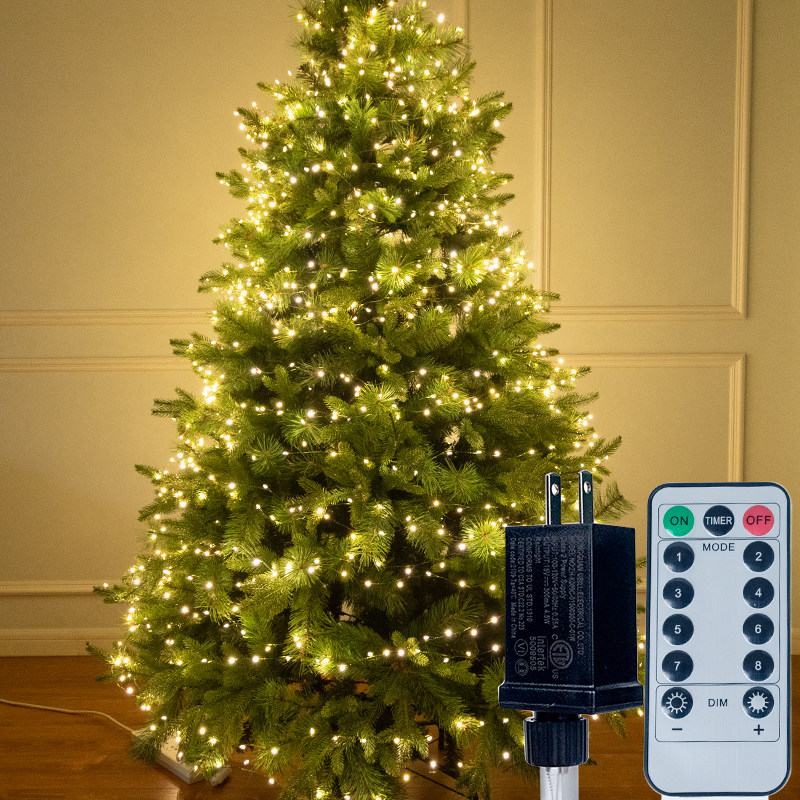 📚 遥控韩国圣诞树灯串鞭炮灯圣诞节装饰隐藏绿线铜线灯加密1200头