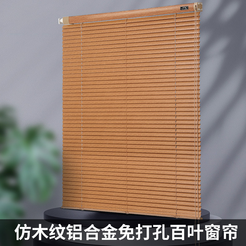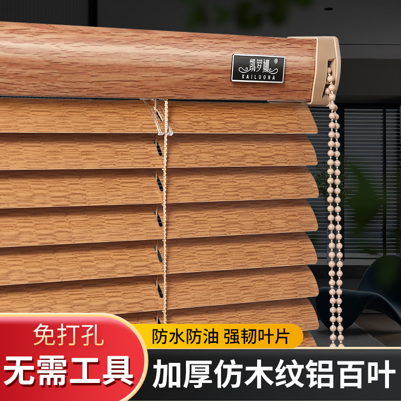 📚 百叶窗帘免打孔仿木纹铝合金防水遮阳办公M室卫生间厨房浴室卷帘