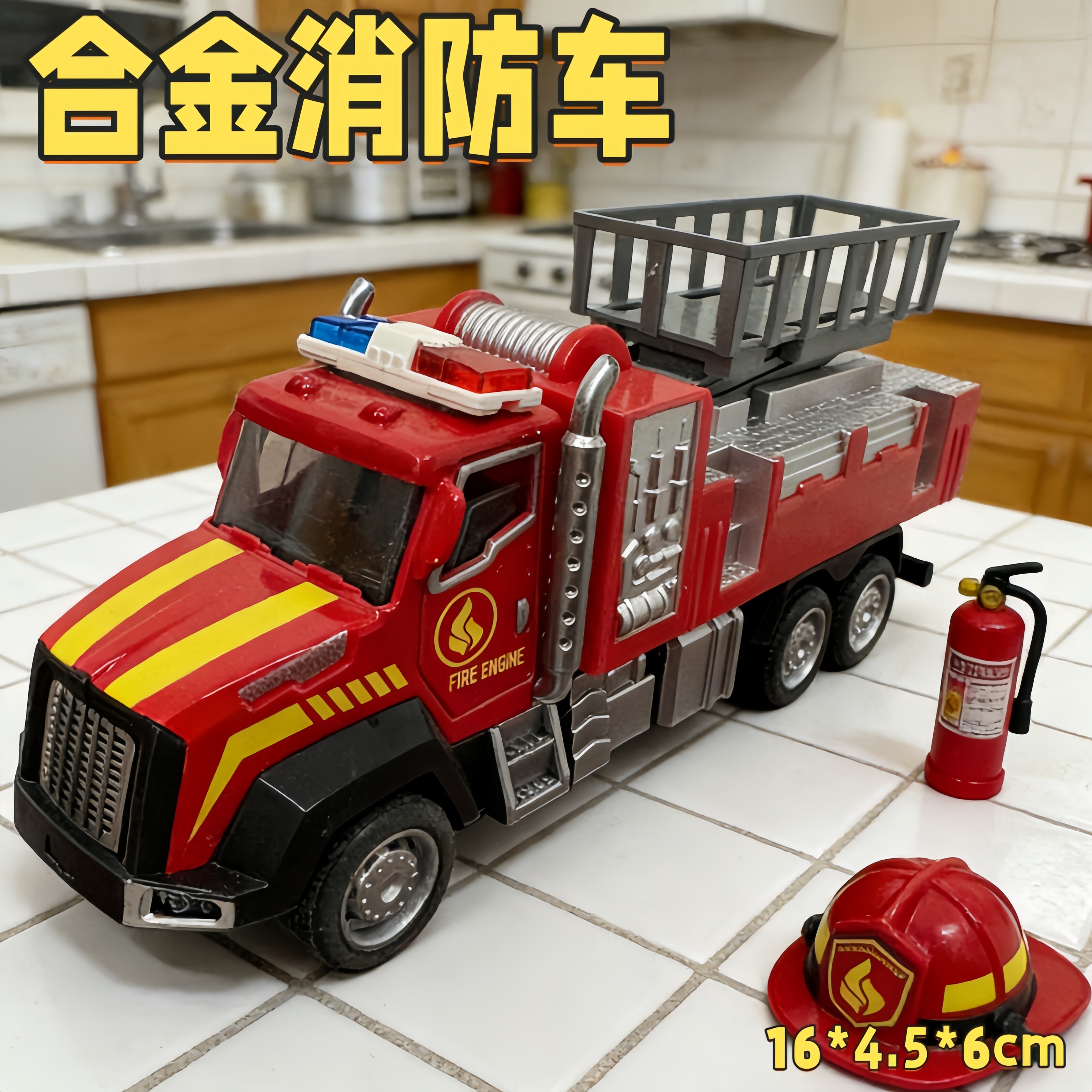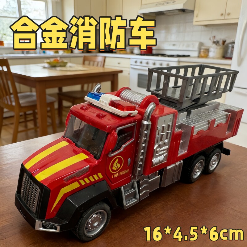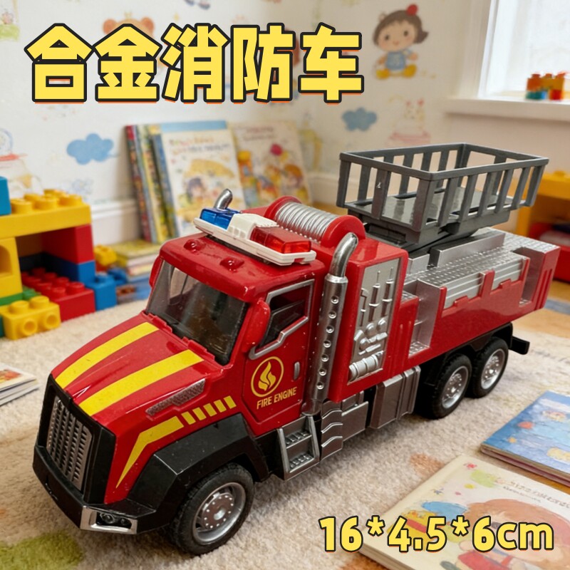 📚 合金消防车玩具儿童惯性滑行仿真消防车男孩玩具车模型