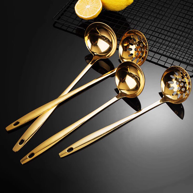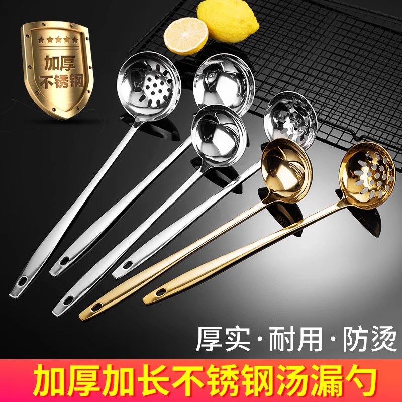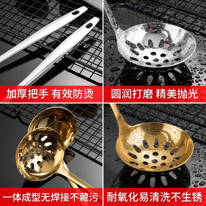 📚 金色汤勺勺子家用长柄大号盛汤不锈钢粥勺火锅勺漏勺商用小号套装