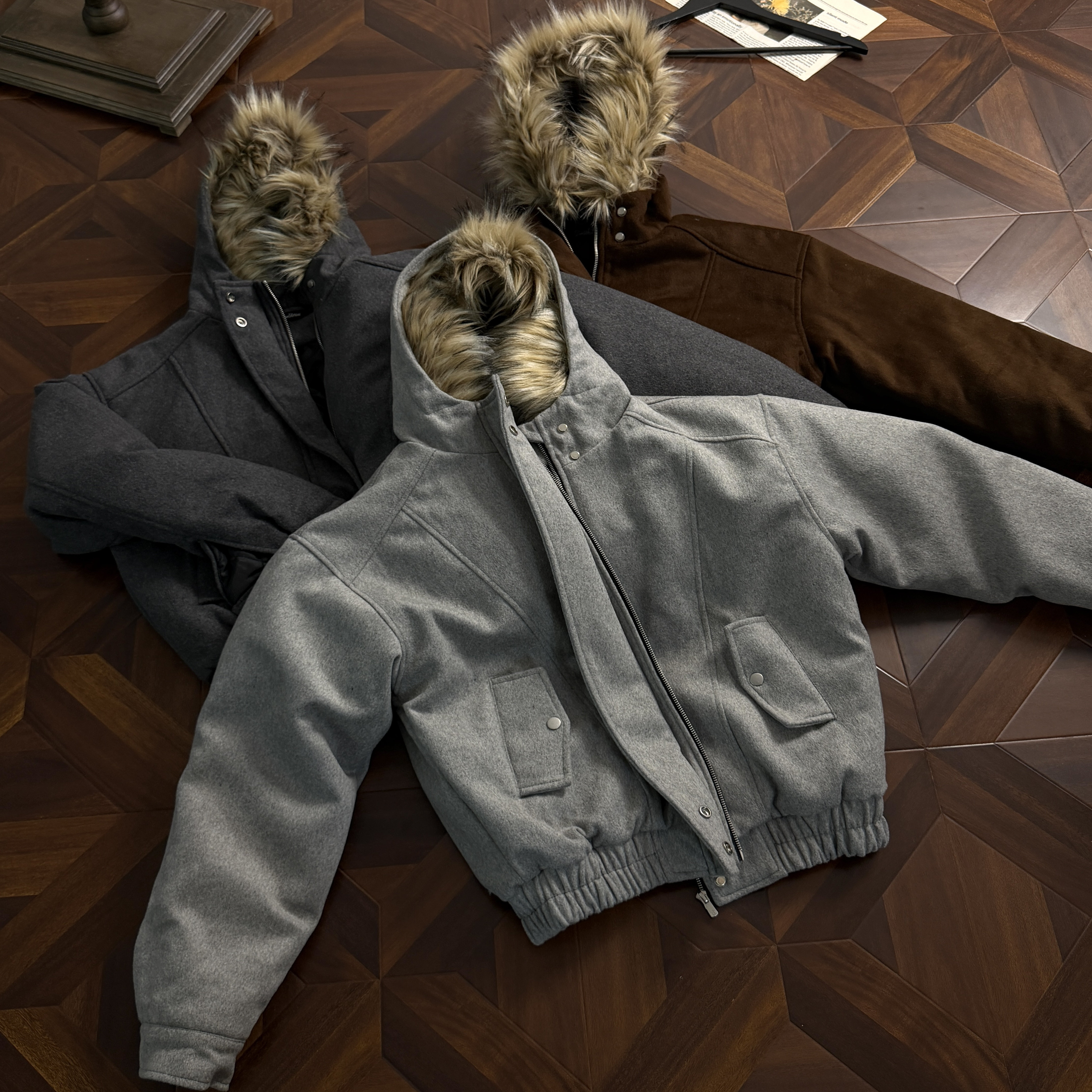 📚 TuM/ 50羊毛呢 座山雕系列连帽 可拆卸狮毛领 加厚棉服外套