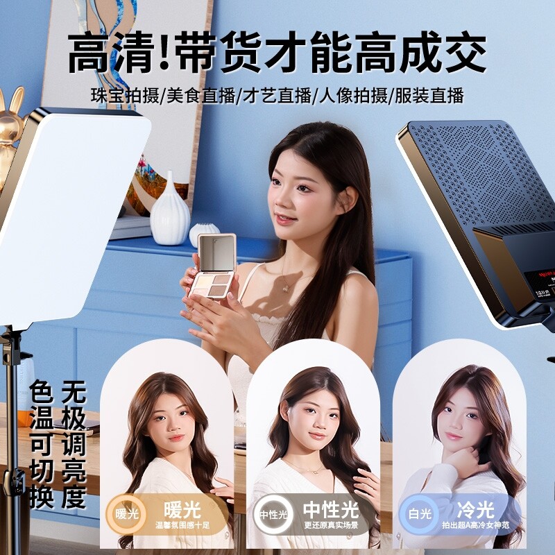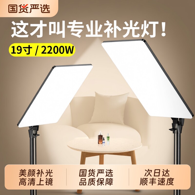 📚 直播补光灯摄影拍摄打光拍照主播专用led直播间专业美食灯光柔光美颜拍视频桌面珠宝室内面光平板灯顶灯落地